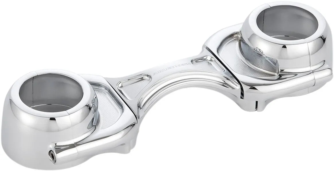 The Arlen Ness Method Fork Brace significantly enhances your motorcycle's front-end rigidity. CNC-machined from forged aluminum, this brace ensures exceptional strength and durability while minimizing weight. The forged construction eliminates unwanted flex in the fork assembly, resulting in improved handling, cornering precision, and overall stability. Its race-inspired design not only enhances performance but also adds a touch of aggressive styling to your bike. The simple and fast installation process doesn't require disassembly of the front end, allowing you to quickly experience the benefits of this high-quality fork brace. Constructed from aluminum with a chrome finish, this brace is built to last and look great.