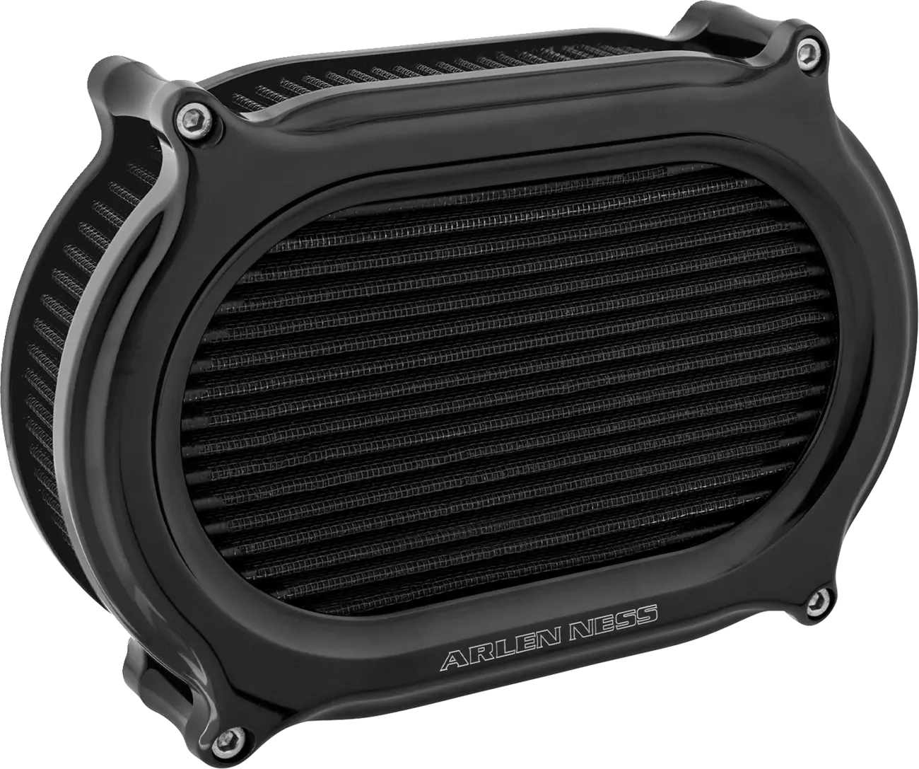 Upgrade your motorcycle's performance with the Arlen Ness Stage 2 Oval Air Cleaner Kit. This kit is engineered to maximize airflow, delivering a noticeable boost in horsepower and torque. The sleek all-black design adds a touch of aggressive style to your ride while improving engine efficiency.
