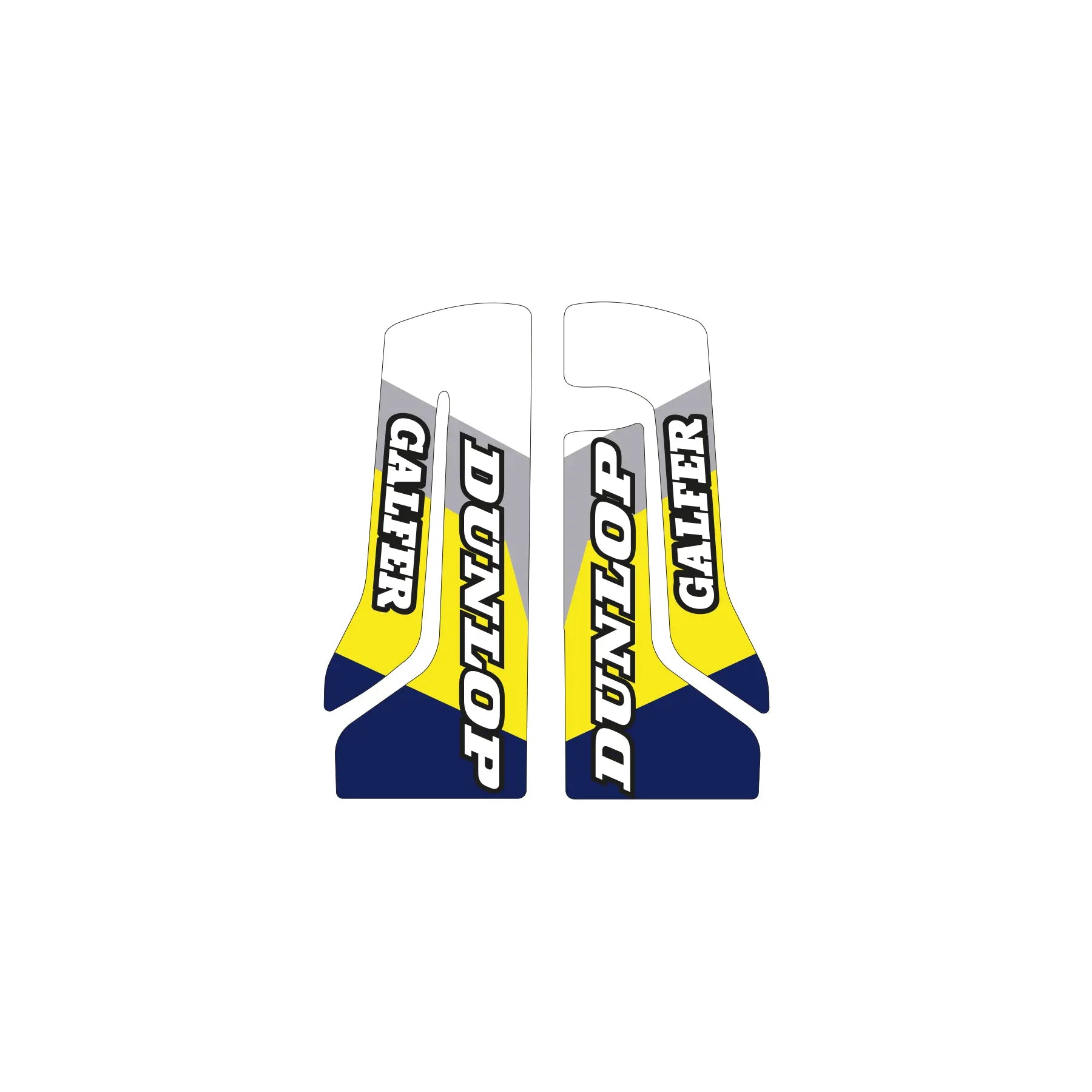 The Blackbird Racing Dream 5 Forkguard Graphics are designed for enthusiasts who demand both protection and style. Made from a robust 0.5 mm thick, back-printed shiny crystall material, these stickers provide excellent resistance against wear and tear from rocks, roost, and other track debris. Specifically shaped for Husqvarna models, these fork guard decals ensure a perfect fit and seamless integration with your bike's existing aesthetics. Installation is straightforward, allowing you to quickly upgrade your motorcycle's appearance and safeguard its fork tubes. The vibrant gray, purple, white, and yellow color scheme of the Dream 5 design will make your bike stand out from the crowd.