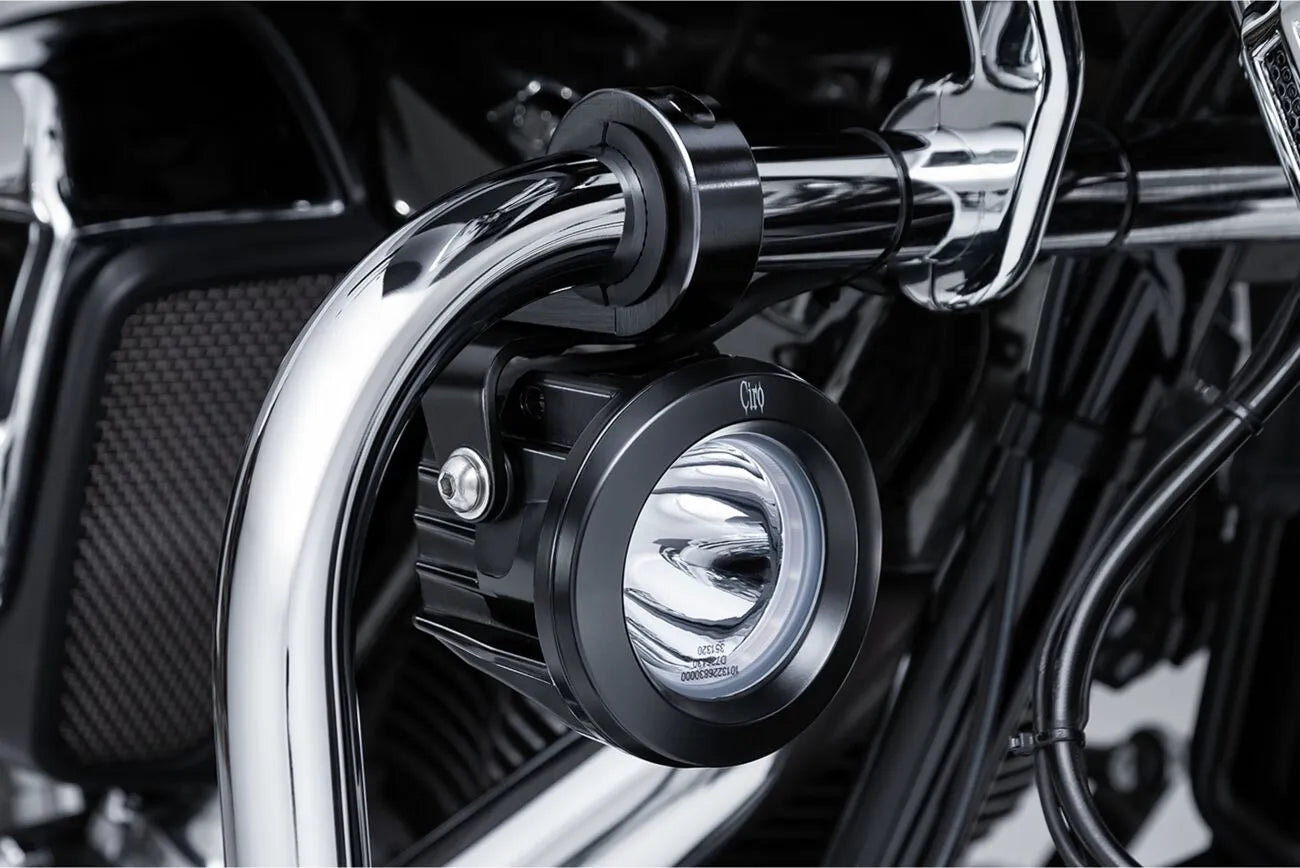 The Ciro TAC-10 Light Cannons utilize 10W high-intensity LEDs to deliver exceptional brightness. The engineered brackets ensure a straightforward bolt-on installation, with the flexibility to adjust the lights up/down and side-to-side for optimal beam alignment. The 15-degree beam pattern provides focused light penetration, while the built-in white halo ring adds a stylish accent. Producing 1,472 effective lumens and 2,104 raw lumens per pair, these lights significantly improve nighttime visibility, increasing your safety. Built with robust materials and precision engineering, the Ciro TAC-10 Light Cannons are built to withstand the rigors of the open road, providing long-lasting performance and reliability. The included Plug-n-Play wiring harness simplifies the electrical connection, making the installation process even easier. Upgrade your motorcycle's lighting system with the Ciro TAC-10 Light Cannons and experience enhanced visibility and a custom look.