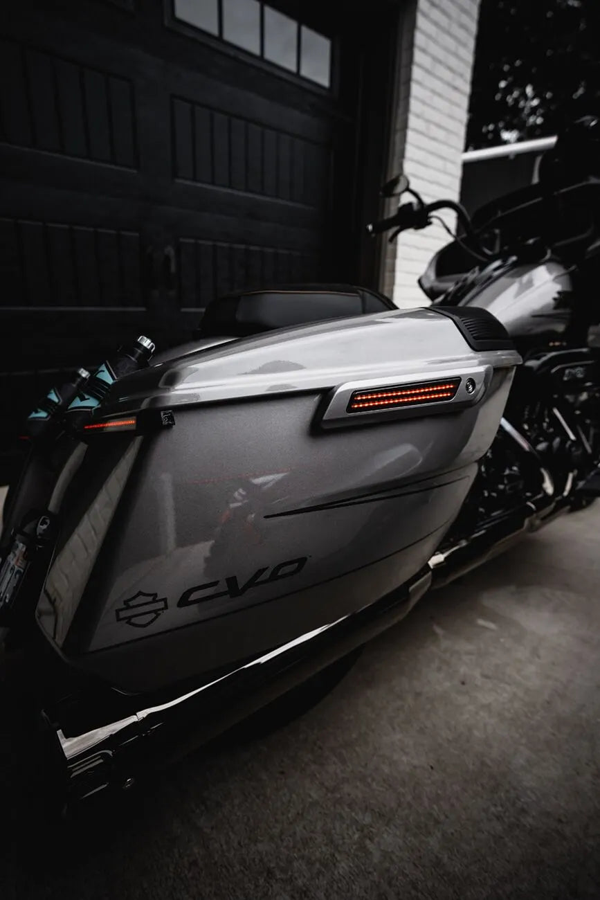 The Custom Dynamics LED Saddlebag Latch Lightz™ replace your OEM saddlebag hinge faceplates, offering a seamless and stylish upgrade. Each unit features 81 dual-color amber/red LEDs, providing a bright red running light and brake light with a full contrast amber turn signal. The smoke lens adds a touch of modern flair to your motorcycle's rear profile. Installation is a breeze with the included plug-and-play harness that connects under the seat, making this a simple and effective way to improve safety and aesthetics. Improve your motorcycle's visibility and style with these bright, easy-to-install LED saddlebag lights.