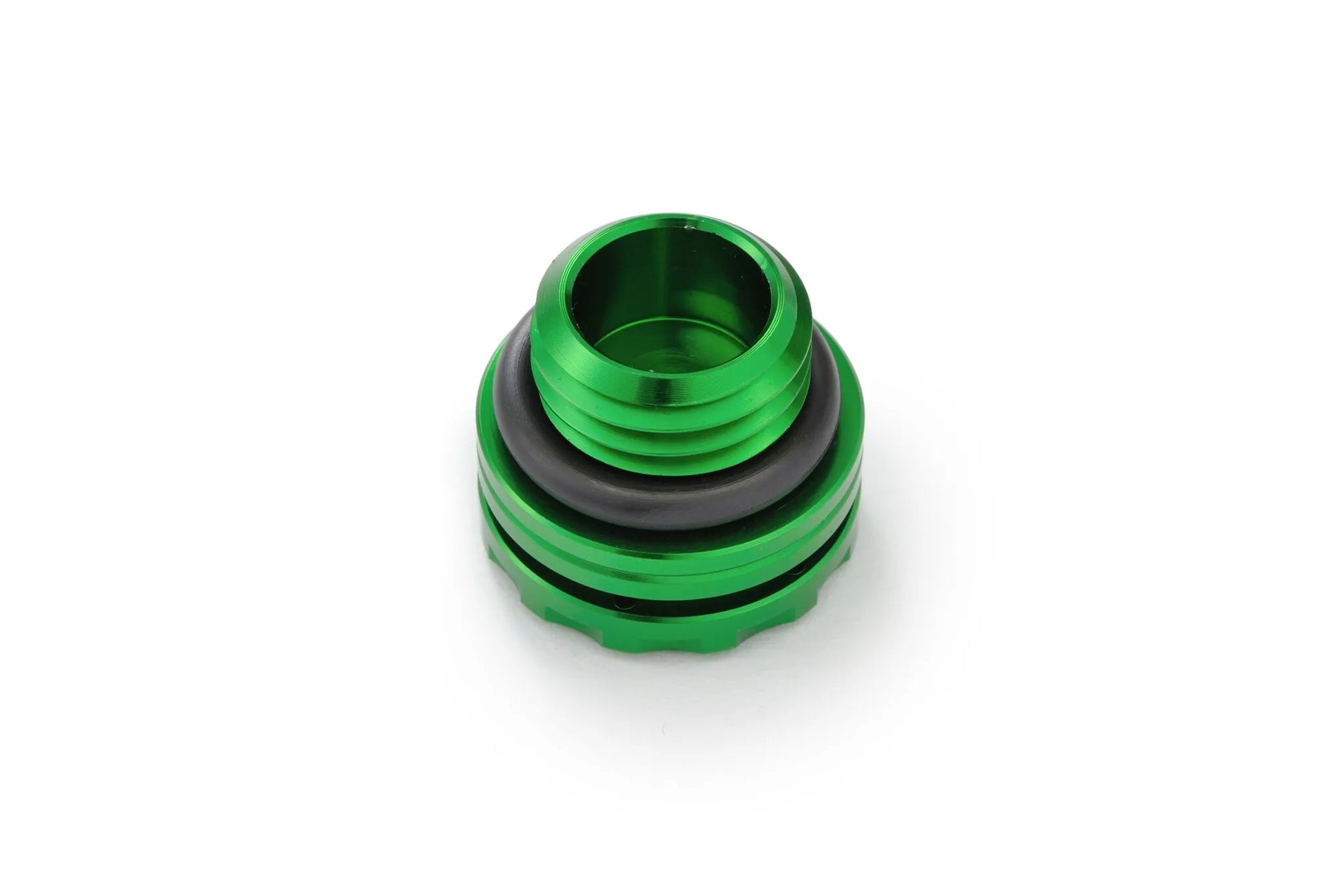 The Daytona CNC Oil Filler Cap is meticulously crafted from CNC billet aluminum, ensuring exceptional durability and a precise fit. Its vibrant, anodized green finish offers a striking visual enhancement to your motorcycle's engine. Designed with a wire locking hole, this cap provides an added layer of security, preventing unauthorized removal or loosening during rides. The included O-ring guarantees a tight, leak-proof seal, keeping your engine oil where it belongs. Easy to install, this oil filler cap is a perfect blend of style and functionality, offering both aesthetic appeal and peace of mind for motorcycle enthusiasts and professionals alike.
