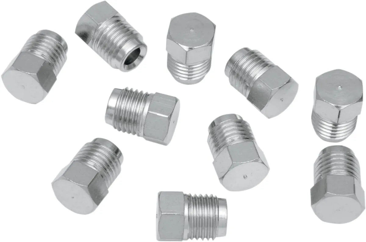 Ensure your custom brake lines are properly sealed with these T-junction plugs from Drag Specialties. Designed for use with Drag Specialties' "make-your-own" brake lines, these plugs provide a secure and reliable closure. This pack includes ten plugs, making it ideal for multiple projects or having spares on hand.