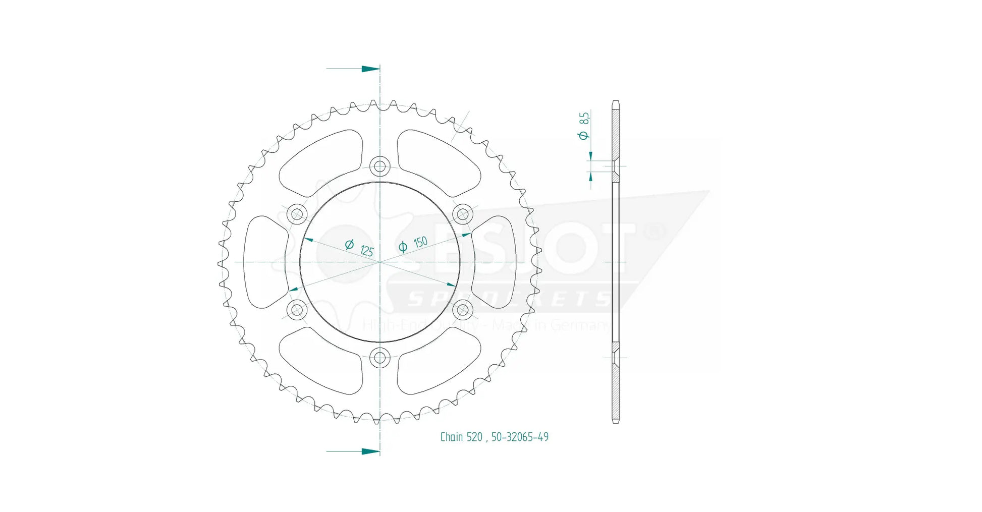 Esjot sprockets are crafted from high-strength QSTE460 steel and feature a specialized surface treatment for enhanced durability and resistance to wear. The advanced Diamond Cut 2.0 process ensures precise toothing, minimizing friction and maximizing power transfer. With concentricity and axial run-out tolerances of less than 0.1 mm, this sprocket guarantees smooth and reliable operation even under the most demanding conditions. Its robust construction makes it ideally suited for wear-intensive environments, providing consistent performance whether you're on the street or the track. Upgrade to Esjot and experience the difference that German engineering makes.