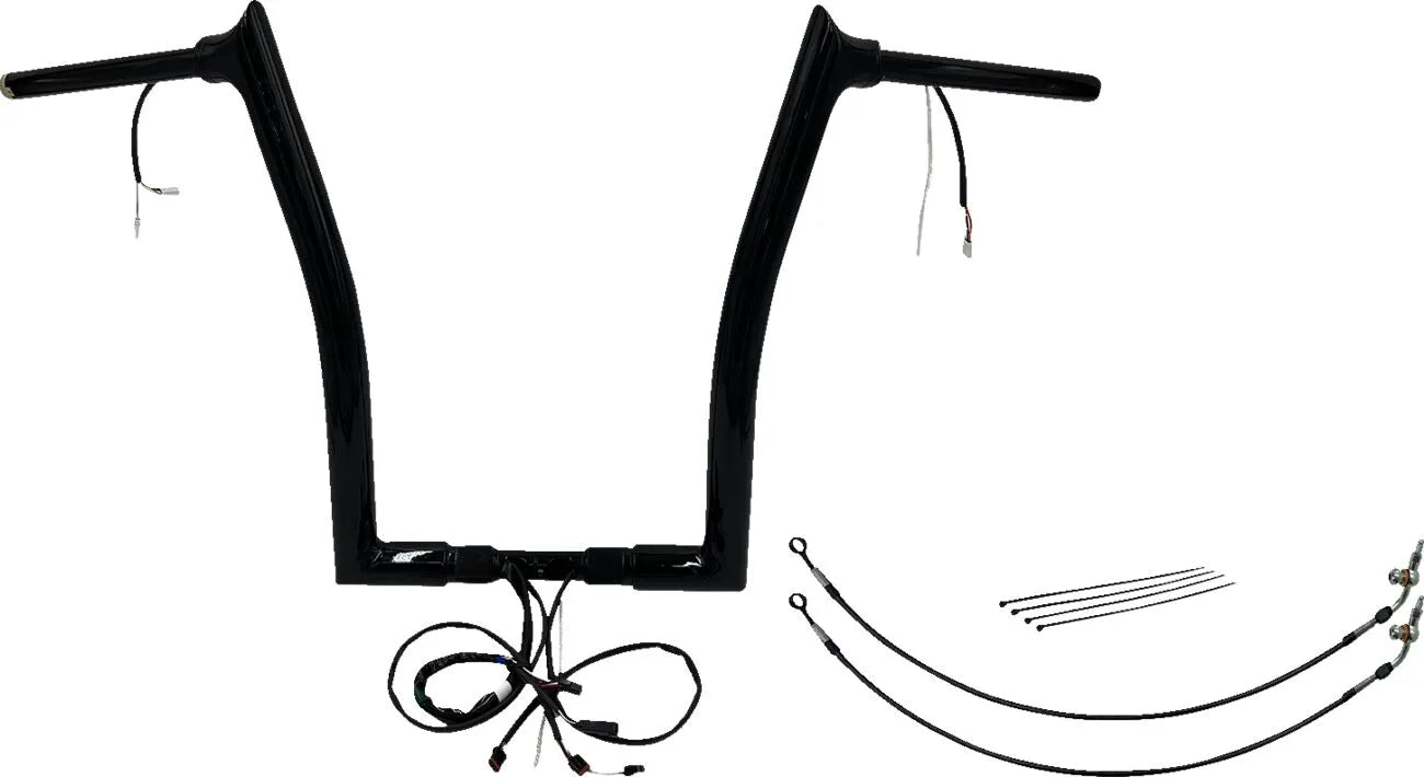 These handlebars are CNC mandrel bent from 1-1/2" diameter x .095" wall heavy-duty steel tubing, ensuring durability and a premium feel. The non-welded top corner, machined from billet steel, features a smooth internal wire cavity to protect your internal wiring. The adjustable 1-1/2" collar next to the handlebar controls allows for a custom finished look. With pre-installed wiring for your handlebar controls, including a throttle-by-wire sensor, installation is a breeze. The bolt-together, 2-piece design also saves shelf space. These ape hanger style handlebars have a 1" control diameter and accept OEM heated grips, offering both comfort and functionality. Proudly made in the U.S.A.Features & highlights