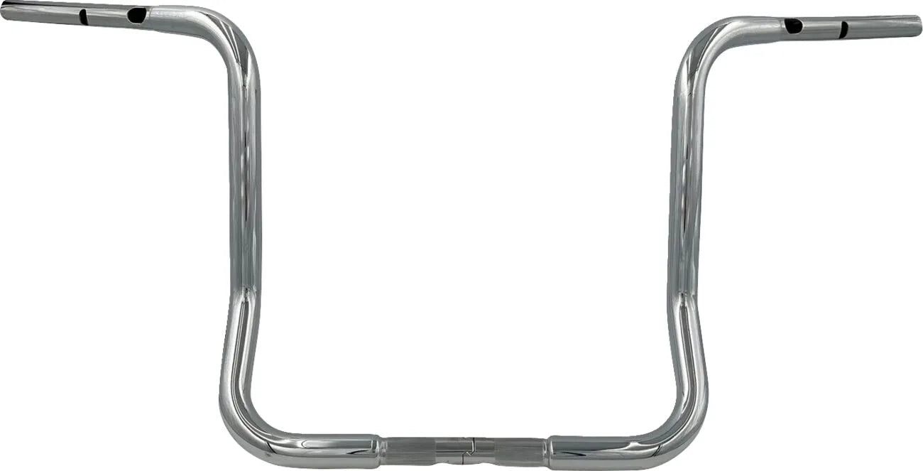The Fat Baggers Inc. handlebar features a unique bolt-together, two-piece design, significantly reducing storage space and simplifying shipping. Constructed from robust 1-1/4" diameter x .120" wall heavy-duty steel tubing using CNC mandrel bending, these handlebars ensure durability and precision. The EZ install design allows for quick and effortless internal wiring, saving you valuable time and effort. Knurled and notched for throttle-by-wire (TBW) applications, these handlebars are engineered for optimal performance and compatibility. With a width of 38" and an end rise of 16", they provide an aggressive yet comfortable riding posture. Proudly made in the USA, these handlebars also accept OEM heated grips, adding extra comfort during colder rides. Finished in chrome for a brilliant shine that will endure years of use.