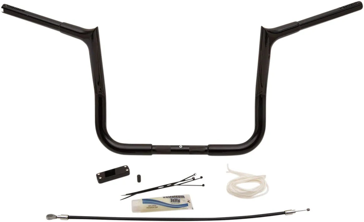These innovative handlebars feature an EZ Install design, meaning you can wire them in minutes. Each kit includes the necessary components for installation based on your motorcycle model and the handlebar height. When needed, you'll receive a brake line extension, clutch line/cable extension, and wiring harness. The handlebars are CNC mandrel-bent from heavy-duty 1-1/4" diameter x .120" wall steel tubing, ensuring durability and strength. Their two-piece, bolt-together design saves shelf space and simplifies shipping. These kits extend existing lines, providing a seamless upgrade. With a 32 mm (1-1/4") diameter, these ape hanger style handlebars provide both comfort and a commanding presence. The black finish offers a sleek look, complementing any bike. Proudly made in the USA, Fat Baggers Inc. delivers top-notch quality and performance.Features & highlights