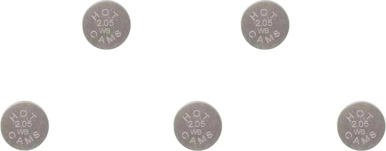 Hot Cams valve shims are manufactured to exacting standards, ensuring consistent thickness and precise fitment. Maintaining proper valve clearance is essential for maximizing horsepower, improving fuel efficiency, and extending engine life. This 5-pack of 2.05mm shims allows you to easily replenish your Hot Cams valve shim kit, ensuring you always have the right size on hand for your next valve adjustment. The 9.48mm diameter makes them compatible with a wide range of motorcycles and ATVs using this common shim size. Trust Hot Cams for dependable performance and accurate valve adjustment.