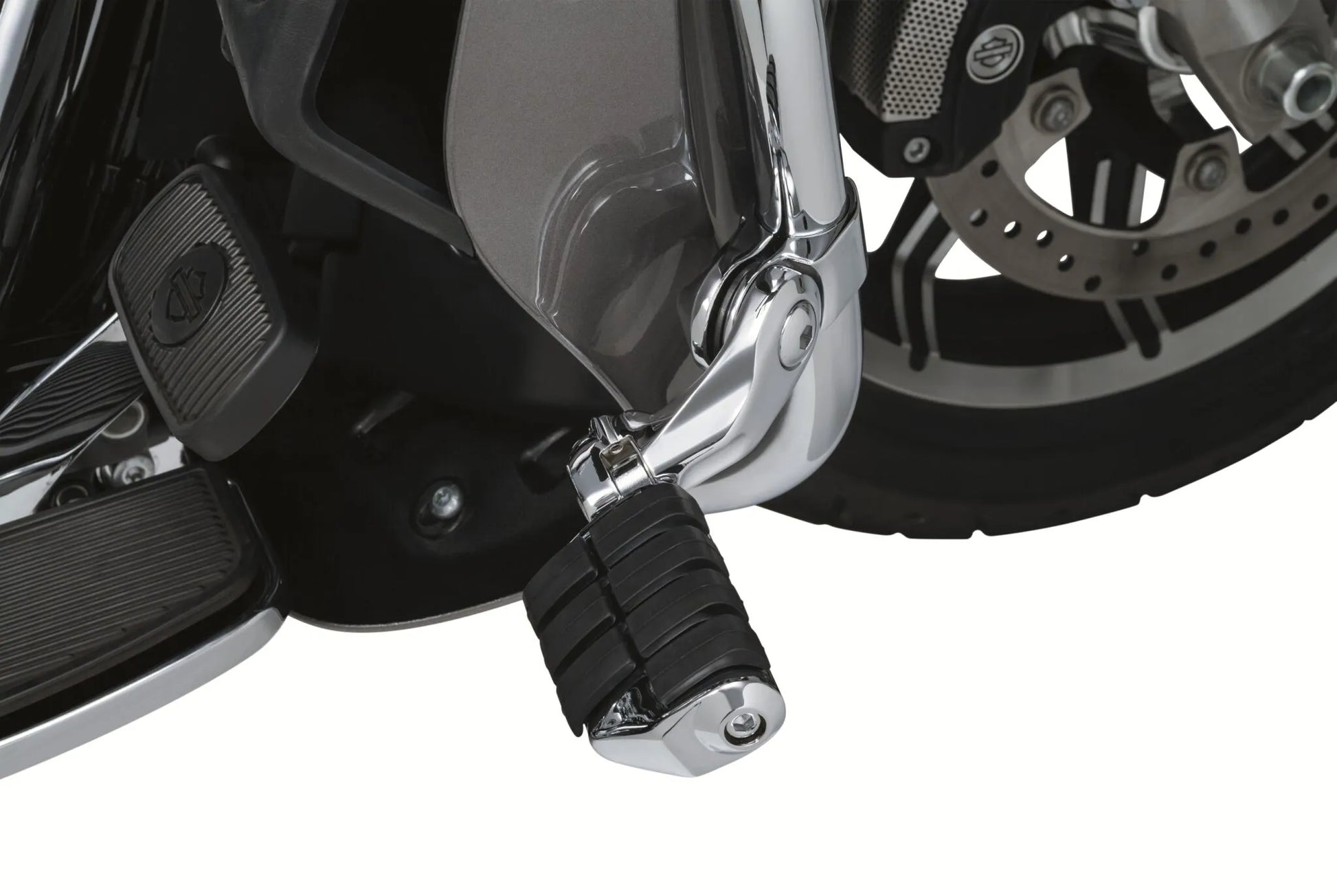 - Easily mount cruise pegs on Dresser/Touring models with fairing lowers.
