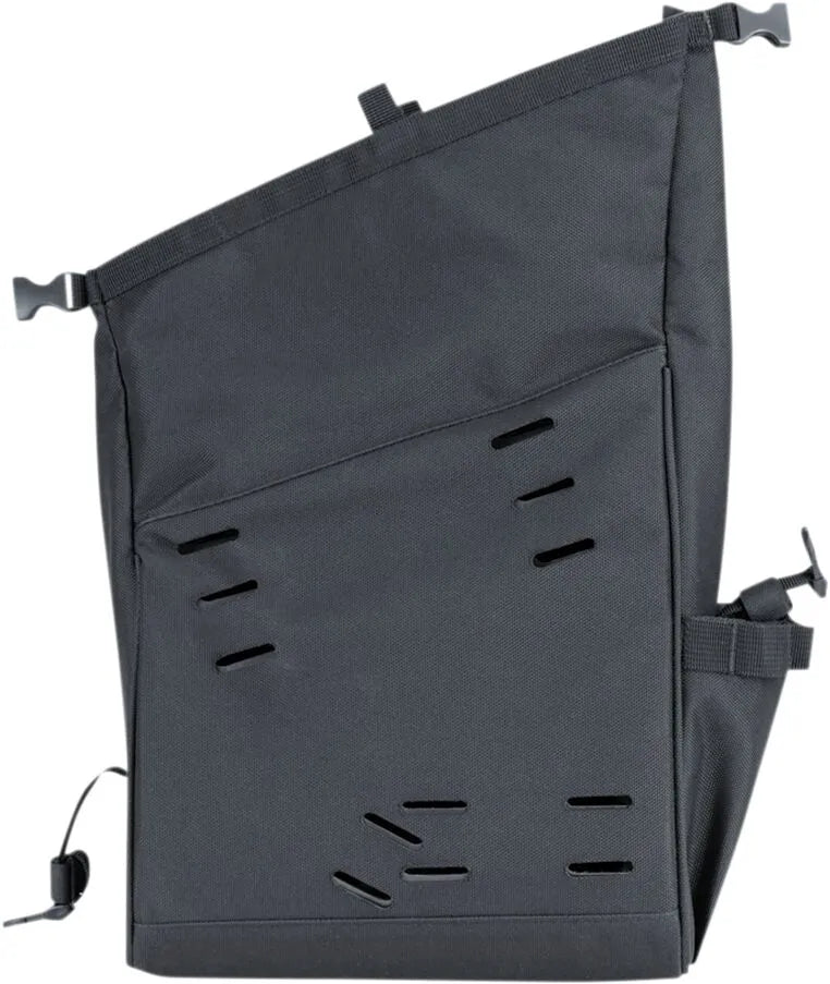 The Kuryakyn Hoodrat Swing Arm Bag features a secure roll-top design, offering easy access while mounted and providing added protection from the elements. Constructed from UV-rated, weather-resistant 1200 denier textile, this bag is built to withstand the rigors of the road. An interior liner keeps the main storage compartment free of debris and moisture, ensuring your items stay clean and dry. The rigid bottom-end design provides shape retention, durability, and extra protection. The bag mounts to virtually any exposed triangle-style (Softail) swing arm with a secure, safety-focused strap system that keeps slack in the bag to avoid potential belt or chain interference. An external zippered compartment and multiple external MOLLE attachment points offer additional storage and versatility for tools and bungee cords. With a volume of 16.22 liters, this bag provides ample space for your riding essentials. Installation is straightforward, allowing you to quickly add valuable storage to your motorcycle.Features & highlights