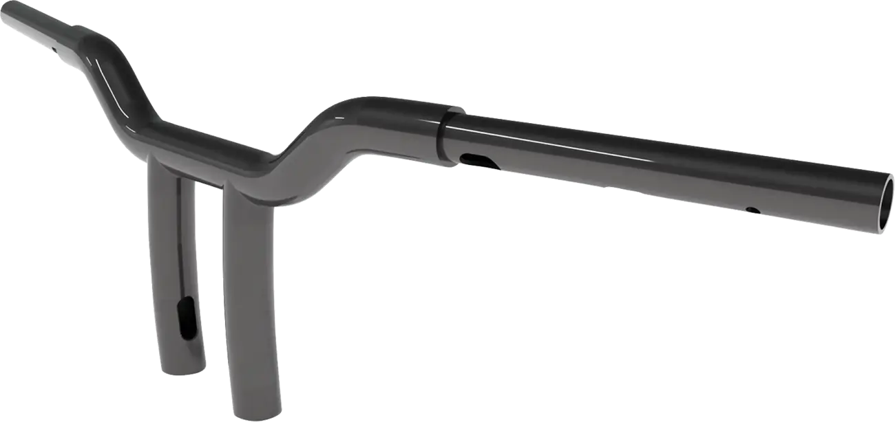 The Magnum Shielding Top Gun T-Bar Handlebar delivers an optimal blend of form and function. Its subtly curved uprights offer enhanced pullback without compromising the motorcycle's clean lines. The handlebar features a 1-1/4" diameter and a 3-1/2" on center mounting geometry, making it compatible with standard controls, including hydraulic clutches and OE heated grips. Manufactured with precision, the handlebar incorporates machined control mounts and laser-cut, burr-free holes for seamless internal wiring and electronic throttle control integration. CNC mandrel bending ensures an accurate fit, while the incorporated wrist angles are designed to maximize riding comfort. The preloaded E-Z pull-thru sleeving simplifies the wiring installation process, saving you time and effort.
