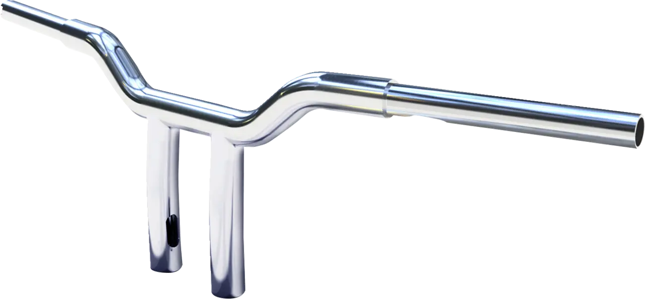 The Magnum Shielding Top Gun T-Bar Handlebar offers a unique blend of style and functionality. Its subtly curved uprights provide the perfect amount of pullback while maintaining a clean, streamlined appearance. Manufactured with precision, this handlebar features a machined control mount and laser-cut, burr-free holes, ensuring seamless internal wiring and compatibility with electronic throttle control systems. The 1-1/4" diameter and 3-1/2" on-center mounting geometry work flawlessly with standard controls, including hydraulic clutches and OE heated grips. CNC mandrel bending guarantees an accurate fit, and the incorporated wrist angles are designed for enhanced riding comfort. The preloaded E-Z pull-thru sleeving simplifies wiring installations, saving you time and effort. Finished in chrome for a sleek, durable look, this handlebar is ready to transform your motorcycle's feel and style.