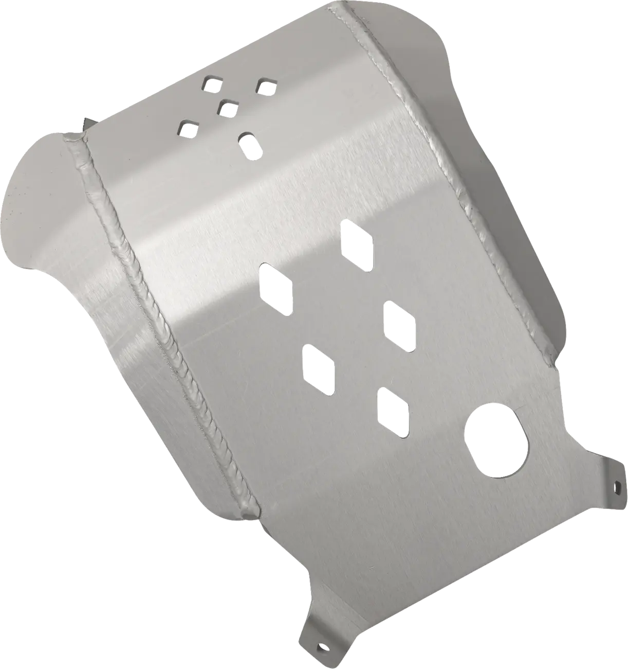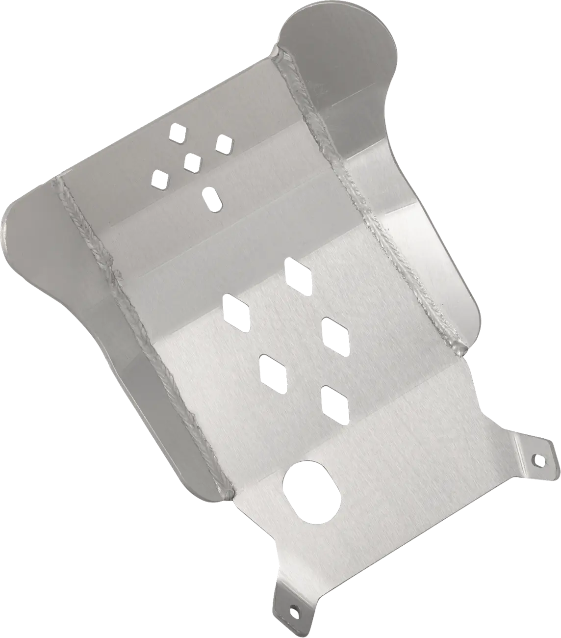 The Moose Offroad Aluminum Skid Plate is constructed from robust 3/16" 5052 H-32 aluminum, offering exceptional strength and impact resistance. Its smooth underside prevents snagging on logs and obstacles, ensuring uninterrupted progress on challenging terrains. The clear anodized finish provides excellent corrosion protection while maintaining a sleek appearance. An integrated oil drain hole (where applicable) simplifies maintenance. This skid plate is secured with heat-treated chromoly steel clamps and includes all necessary mounting hardware for a hassle-free installation. Invest in the Moose Offroad Aluminum Skid Plate and ride with confidence, knowing your engine is well-protected. This skid plate not only enhances your motorcycle's protection but also adds a touch of rugged style.