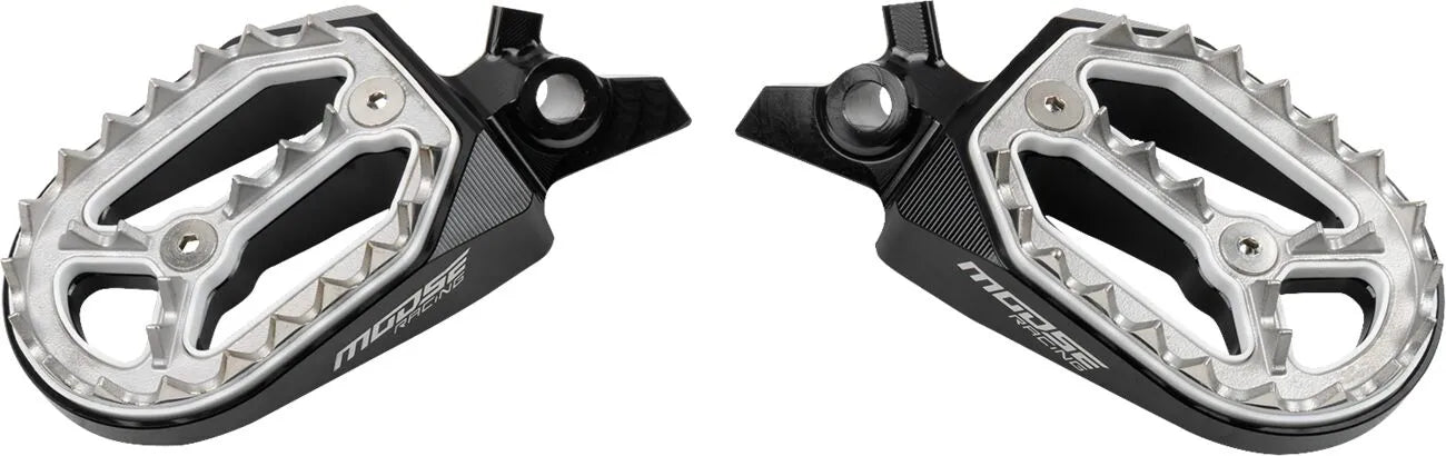 The Moose Offroad Qualifier Foot Pegs feature a two-piece, lightweight design crafted from CNC-machined aluminum alloy, offering exceptional strength and durability without adding unnecessary weight. The extra-wide, replaceable stainless steel footplate delivers ultimate grip, allowing for precise control and reduced fatigue. A rubber damper is integrated into the footplate, effectively absorbing shock and vibrations, resulting in a more comfortable and controlled ride. These foot pegs are designed for easy installation and allow for the use of OEM springs, ensuring a seamless fit and reliable performance. Experience the difference a quality set of foot pegs can make and elevate your riding experience with Moose Offroad Qualifier Foot Pegs. Available in a sleek black, chrome, and silver finish.