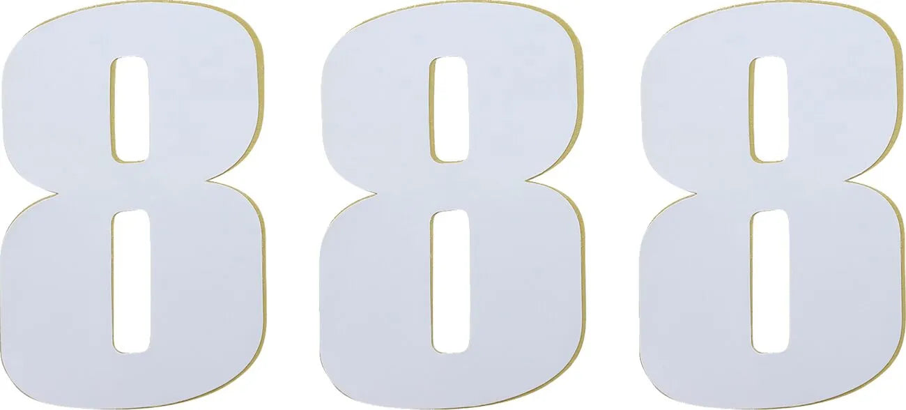 Moose Offroad's Vinyl Race Numbers are designed for racers who demand quality and durability. The 12 mm thick, high-gloss vinyl provides a professional look and resists wear and tear. With super tacky adhesive, these numbers will adhere securely to your number plates. The 6" height of these white number 8s makes them ideal for prominent display on your bike. Easy to apply and built to last, these vinyl race numbers are an essential upgrade for any serious rider looking to personalize their machine. Show off your number with confidence and style.