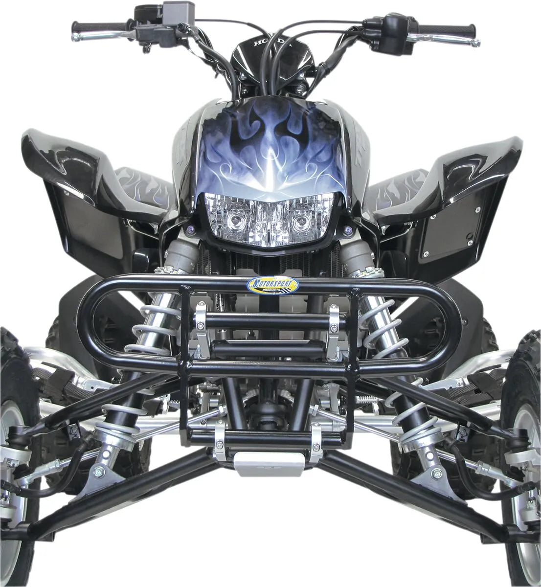 This bumper requires a Motorsport Products bumper bracket kit (sold separately) for proper installation. It is compatible with sixteen different ATV models when used with the appropriate bracket. Verify the correct bracket kit for your specific ATV model before purchase.