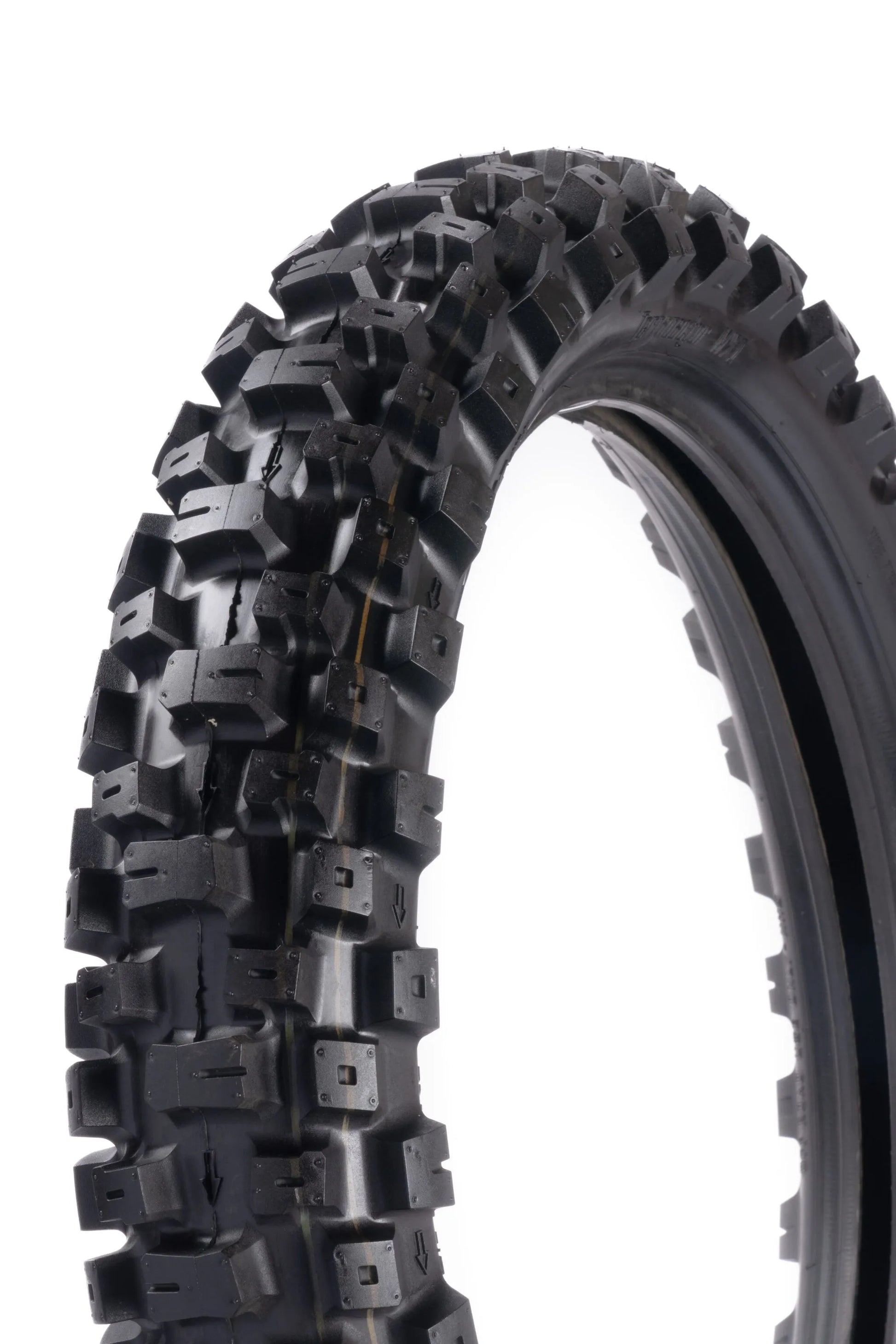 The Terrapactor Mxi intermediate tire features a distinctive tread pattern, meticulously designed to maximize performance. Strategic flex points within the carcass and knobs provide riders with predictable handling and enhanced cornering grip. These flex zones enable the tire to adapt dynamically to varying terrain conditions, providing superior control and inspiring confidence. The tire's innovative design delivers optimal traction and stability, enabling riders to push their limits and achieve peak performance on any MX course.