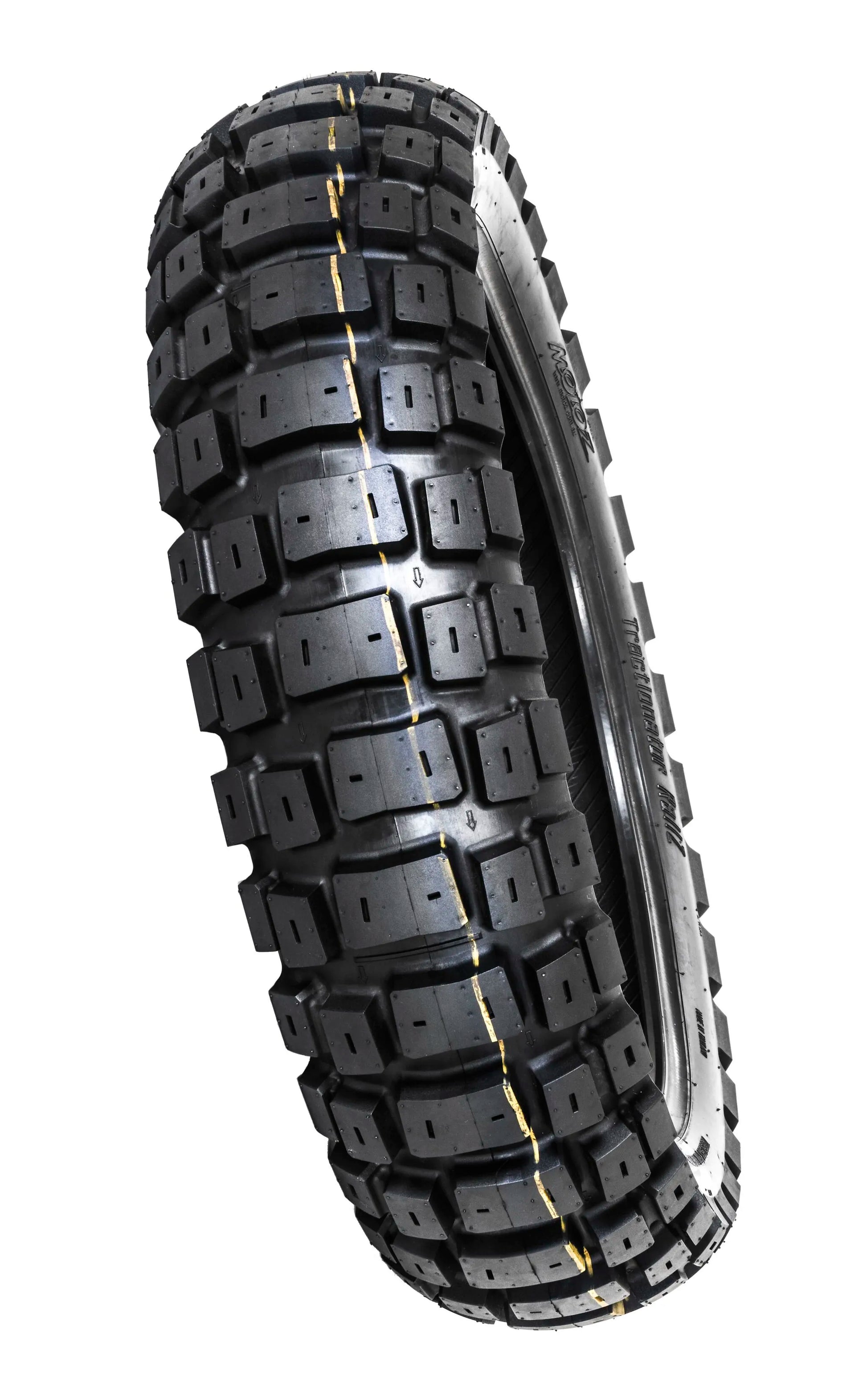 Designed and tested in Australia, the Motoz Tractionator Rallz tire features a robust construction and compound, ensuring reliability across various terrains. Its self-cleaning and self-sharpening tread pattern maximizes grip and control, while the hybrid compound with silica enhances performance in mud and snow. This tube type tire is engineered to minimize the need for pressure adjustments between off-road and on-road transitions, providing consistent performance for dual sport applications. The Motoz Tractionator Rallz is an ideal rear tire to keep you moving through the toughest conditions. Its 130mm width and 80 aspect ratio on a 17" rim provide the grip and stability needed for serious adventure riding. Get the ultimate grip with the Motoz Tractionator Rallz!
