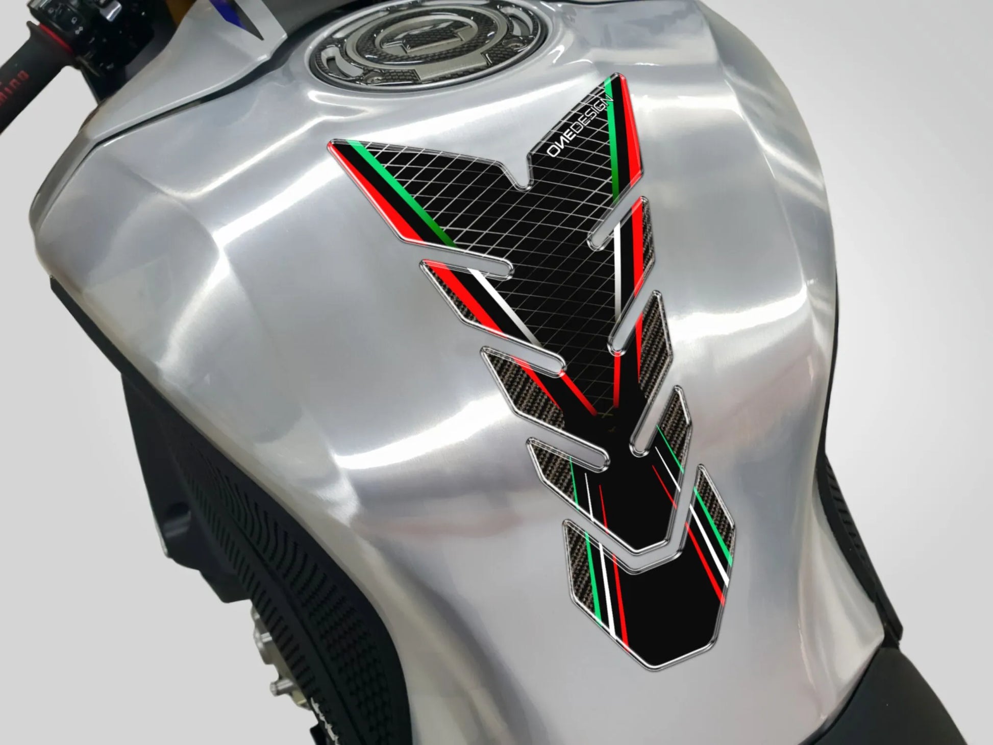 The Onedesign tank pad is molded from high-quality resin, offering excellent durability and a sleek aesthetic. Its soft-touch finish not only enhances the look of your bike but also provides a comfortable grip. The self-adhesive backing ensures a secure and easy installation process. Available in various sizes and designs, you can find the perfect tank pad to match your bike's style and provide lasting protection. Upgrade your motorcycle's appearance and safeguard its fuel tank with this essential accessory. Protect your investment and ride with confidence, knowing your tank is shielded from everyday wear and tear. Easy to install and built to last, the Onedesign resin tank pad is a must-have for any rider.