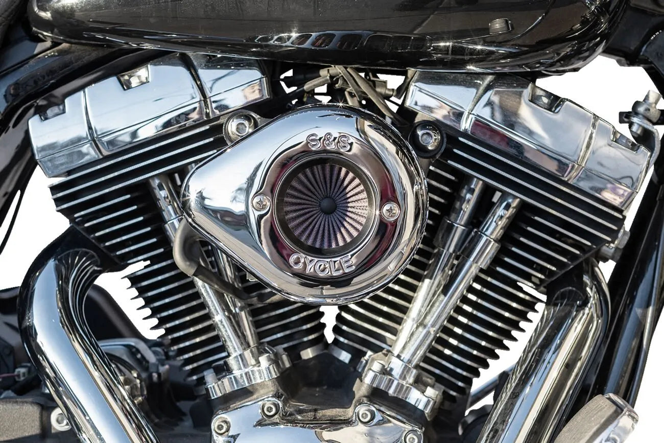 The S&S Cycle Air Stinger Stealth Air Cleaner Kit enhances the proven high-flow Stealth air cleaner design by replacing the air-smoothing stinger with a filter element of similar shape. This innovative design increases the filter surface area, resulting in a remarkable 55% gain over a factory filter. More air translates to improved engine performance, giving you the power you need when you need it. Designed for easy installation and maximum impact, this air cleaner kit is a must-have for any serious rider. Crafted with high-quality materials, the Stealth Air Cleaner not only boosts performance but also adds a sleek, custom look to your bike.
