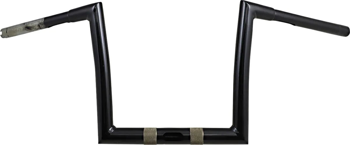 The Todd's Cycle Touring Handlebar features a robust 1-1/4" diameter in the clamping area, providing increased strength and stability. The knurled clamping area ensures a secure grip, preventing slippage during demanding rides. This handlebar is proudly made in the U.S.A., reflecting superior craftsmanship and quality. Designed to work seamlessly with OEM risers and clamps, it features the correct wire exit location for a clean and professional installation. You won't need to remove the stock pin in the OEM mount clamps, as the bars still provide more than 35° of adjustment. Compatible with hydraulic clutches and notched for throttle-by-wire, this handlebar offers versatility for a range of motorcycle setups. The gloss black finish adds a touch of sleekness to your motorcycle. With a width of 30", end rise of 10" and pullback/sweep of 6", you'll enjoy a comfortable upright riding position. Upgrade to Todd's Cycle for superior performance and reliability. Transform your ride with the enhanced control and stylish design of this premium handlebar, and experience the difference on every journey.