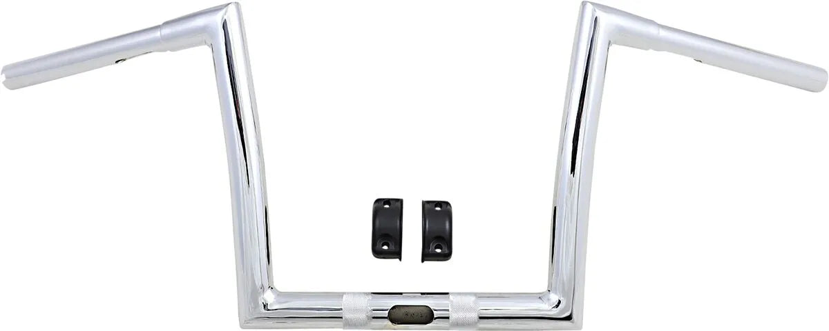 The Todd's Cycle 1-1/4" Touring Handlebar is engineered for superior performance and style. Featuring a robust 1-1/4" diameter in the clamping area, these handlebars provide enhanced rigidity and control. The knurled clamping area ensures a secure grip, preventing slippage. Made in the U.S.A., these handlebars work seamlessly with OEM risers and clamps, with the correct wire exit location. Enjoy over 35° of adjustment without needing to remove the stock pin in the OEM mount clamps. Designed to work with hydraulic clutches, these handlebars offer a blend of functionality and aesthetic appeal. The chrome finish adds a touch of elegance to your ride. With internal wiring capabilities, these handlebars provide a clean and customized look. These ape hanger style bars will give you a comfortable reach and make your bike stand out from the crowd.