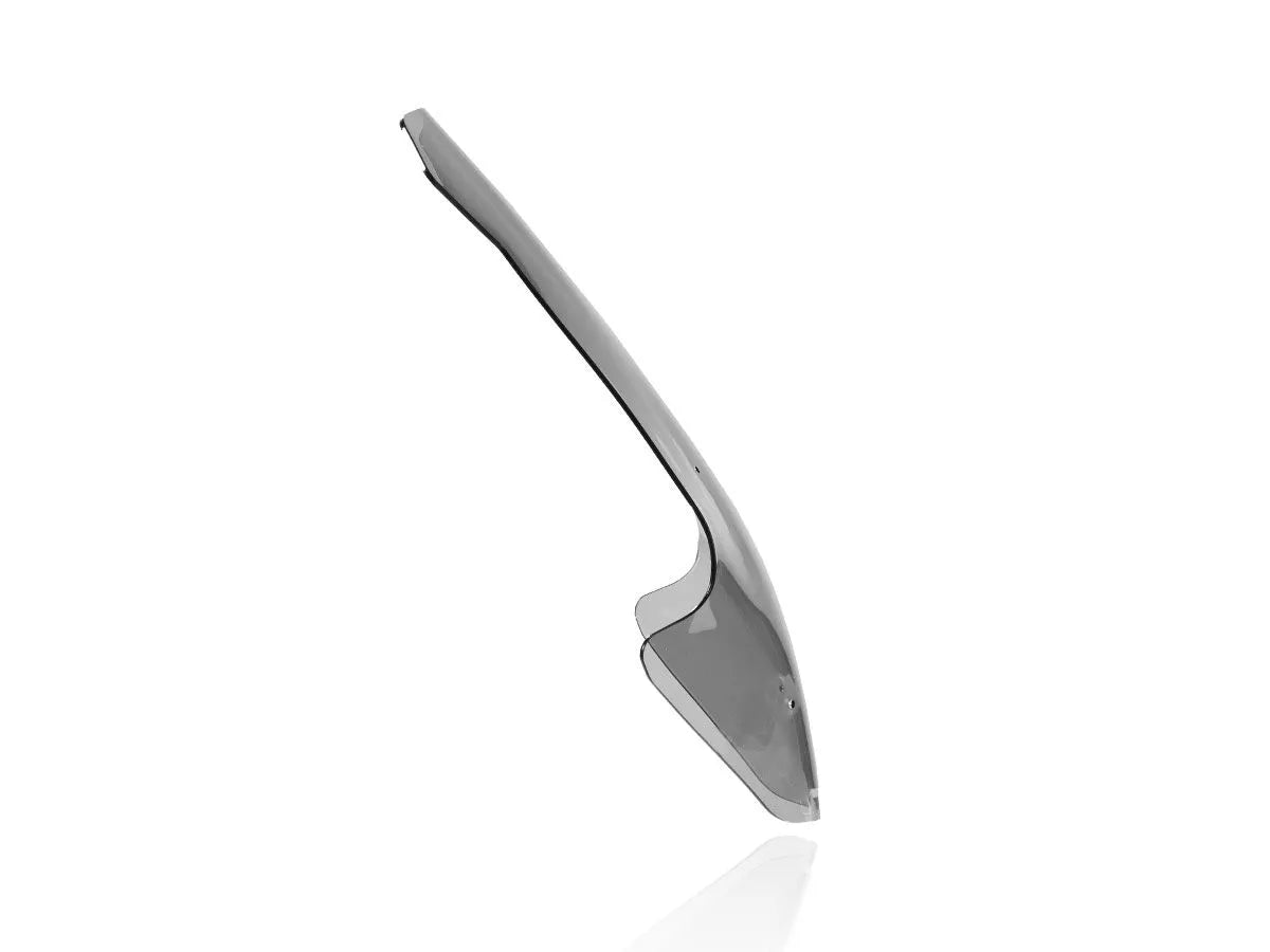 The WRS Windscreen is designed to eliminate annoying turbulence around your shoulders and helmet, allowing for a smoother and more enjoyable ride. Its optimized shape deflects wind effectively, reducing fatigue and improving overall comfort, especially on longer journeys. The screen integrates seamlessly with the scooter's existing lines, enhancing its visual appeal while offering practical wind protection. Installation is straightforward, ensuring a perfect fit and a secure mounting.