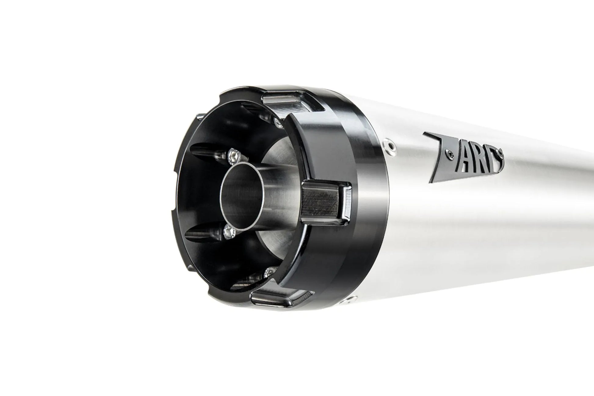 - Features a stylish short cone slip-on muffler and a black anodized aluminum end cap.