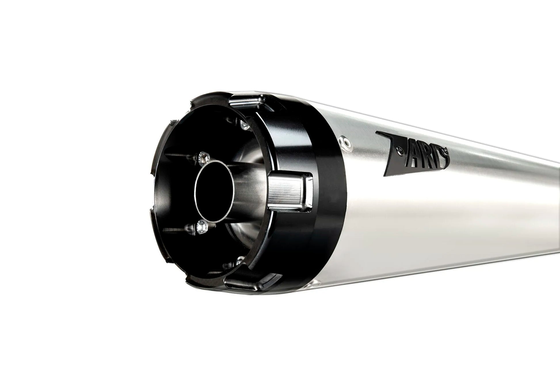 The Zard Full Exhaust System is a complete 2-into-1 exhaust system designed specifically for Harley-Davidson Touring models including Street Glide, Road King, and Road Glide. Developed by Centro Stile Zard, this system features meticulously crafted headers, a short cone slip-on muffler, and a black anodized aluminum end cap, combining style and performance. Available in a polished finish, this Euro 5 homologated system delivers a notable weight reduction of 9.3 kg compared to the OEM exhaust, while also increasing engine performance by 2.1 hp. Installation is straightforward, providing an immediate upgrade to both the aesthetics and functionality of your motorcycle.