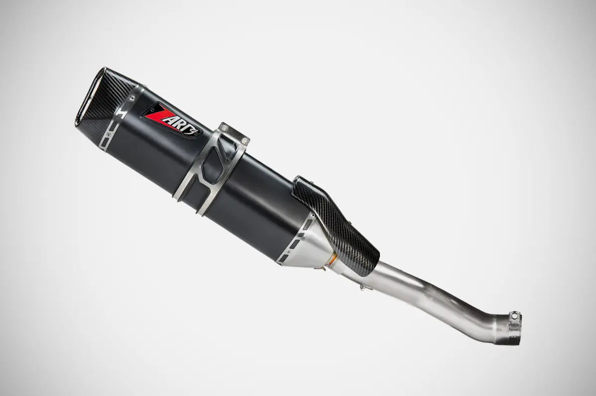 Designed by Centro Stile Zard, this slip-on muffler significantly improves your motorcycle's performance. Experience a notable increase in horsepower compared to the OEM system. The carbon fiber end cap and heel guard add a touch of aggressive elegance, complementing the Pan America's rugged aesthetics. Available in both racing and Euro 5 homologated versions, this exhaust system offers a deep, resonant sound that amplifies your riding experience. Installation is straightforward, allowing you to quickly transform your bike's performance and appearance.