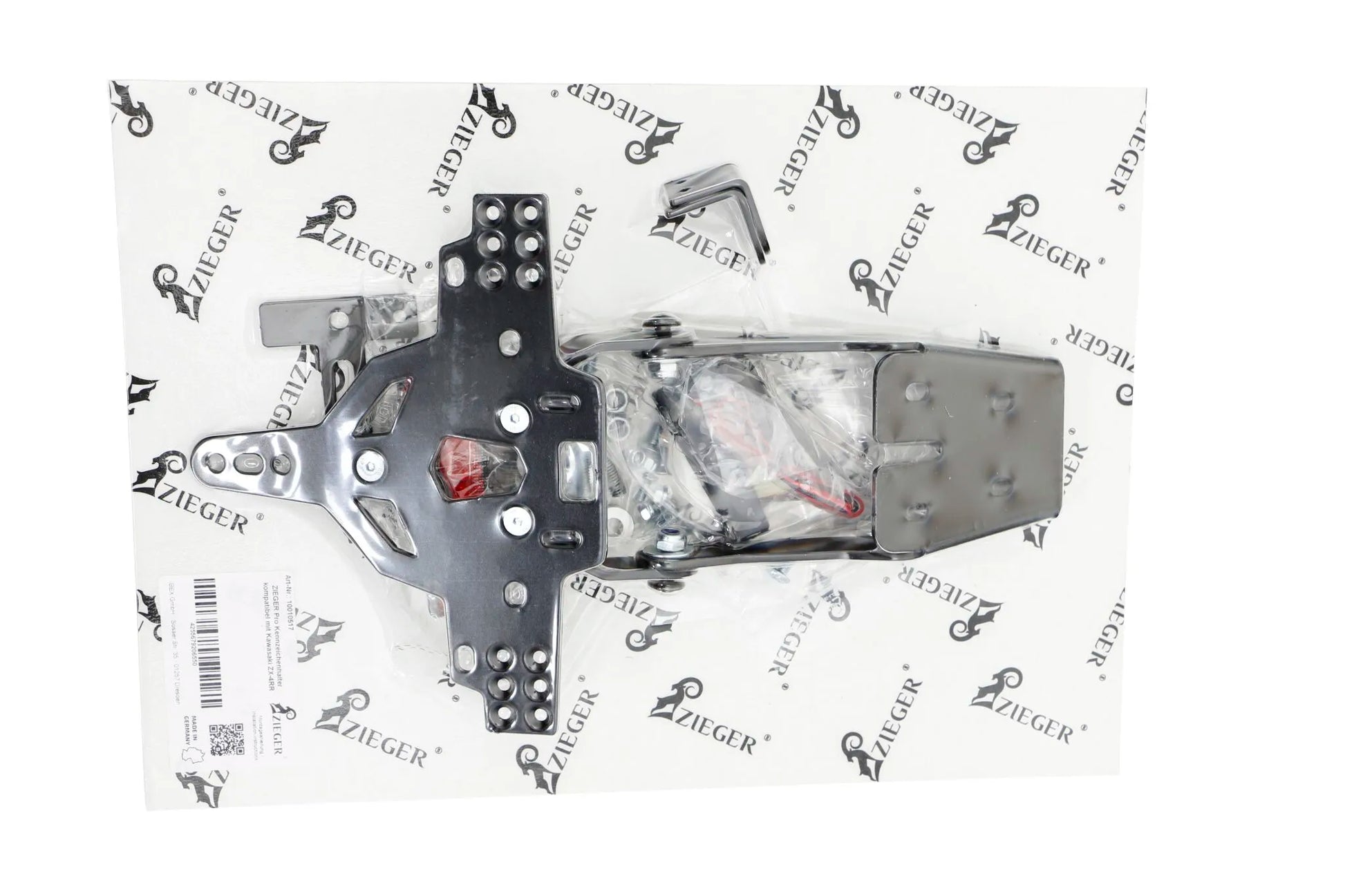 Upgrade your motorcycle's aesthetics with the Zieger Pro License Plate Holder Type C. This holder offers a sleek, sporty look while providing a durable and weatherproof solution for mounting your license plate.