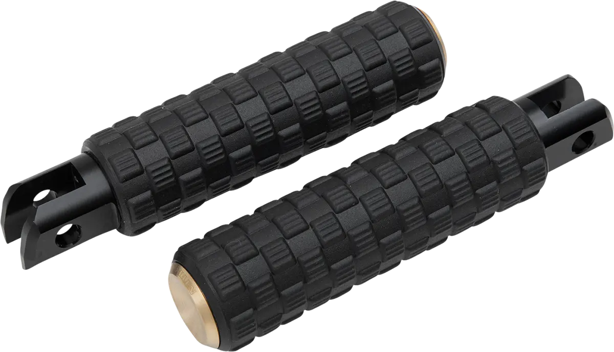 The Arlen Ness M-Eight Fusion Foot Pegs are meticulously crafted to provide exceptional performance and enhance the overall riding experience. These foot pegs feature a combination of durable billet aluminum and high-quality rubber, offering both ruggedness and vibration dampening. The fusion design ensures optimal traction, allowing for precise control and confident maneuvering. The black and brass finish provides a unique aesthetic, adding a touch of custom style to your motorcycle. Installation is straightforward, making these pegs a simple yet effective upgrade. Whether you're cruising down the highway or navigating challenging terrain, the M-Eight Fusion Foot Pegs deliver the perfect balance of style and functionality. These foot pegs are specifically designed for the driver position, ensuring ergonomic comfort and optimal control.