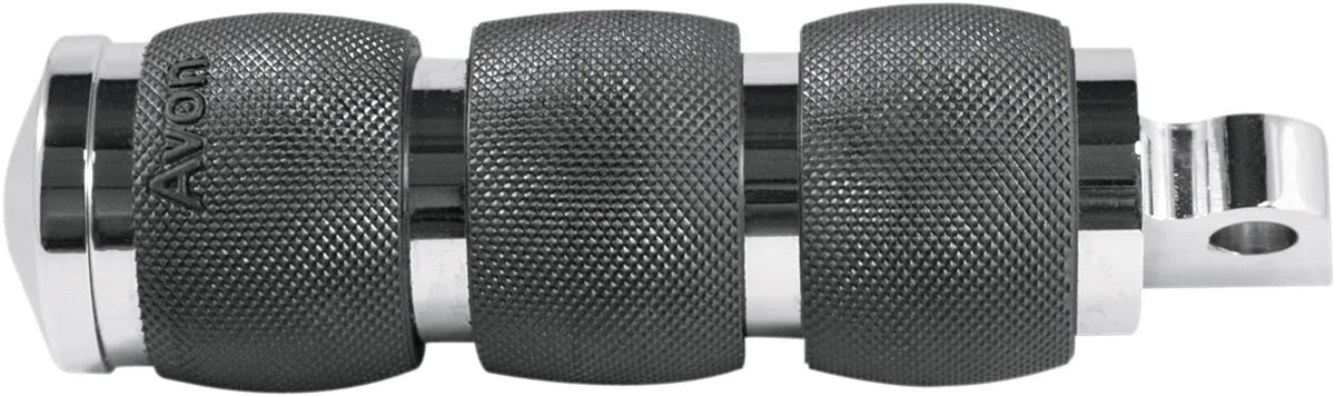 These Avon Grips foot pegs are constructed from durable 6061 billet aluminum and feature comfortable Kraton® rubber inserts, providing excellent grip and vibration dampening. The chrome finish adds a touch of style to your bike. Designed to fit OEM standard female mounts, installation is straightforward. Enhance your riding comfort and control with these premium foot pegs, proudly made in the U.S.A. These foot pegs are suitable for both driver and passenger positions. Improve your motorcycle's look and feel with these quality, chrome foot pegs.