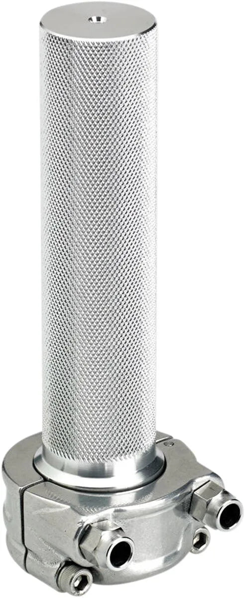 - Machined throttle grip tube accepts standard rubber motorcycle grips for added comfort.