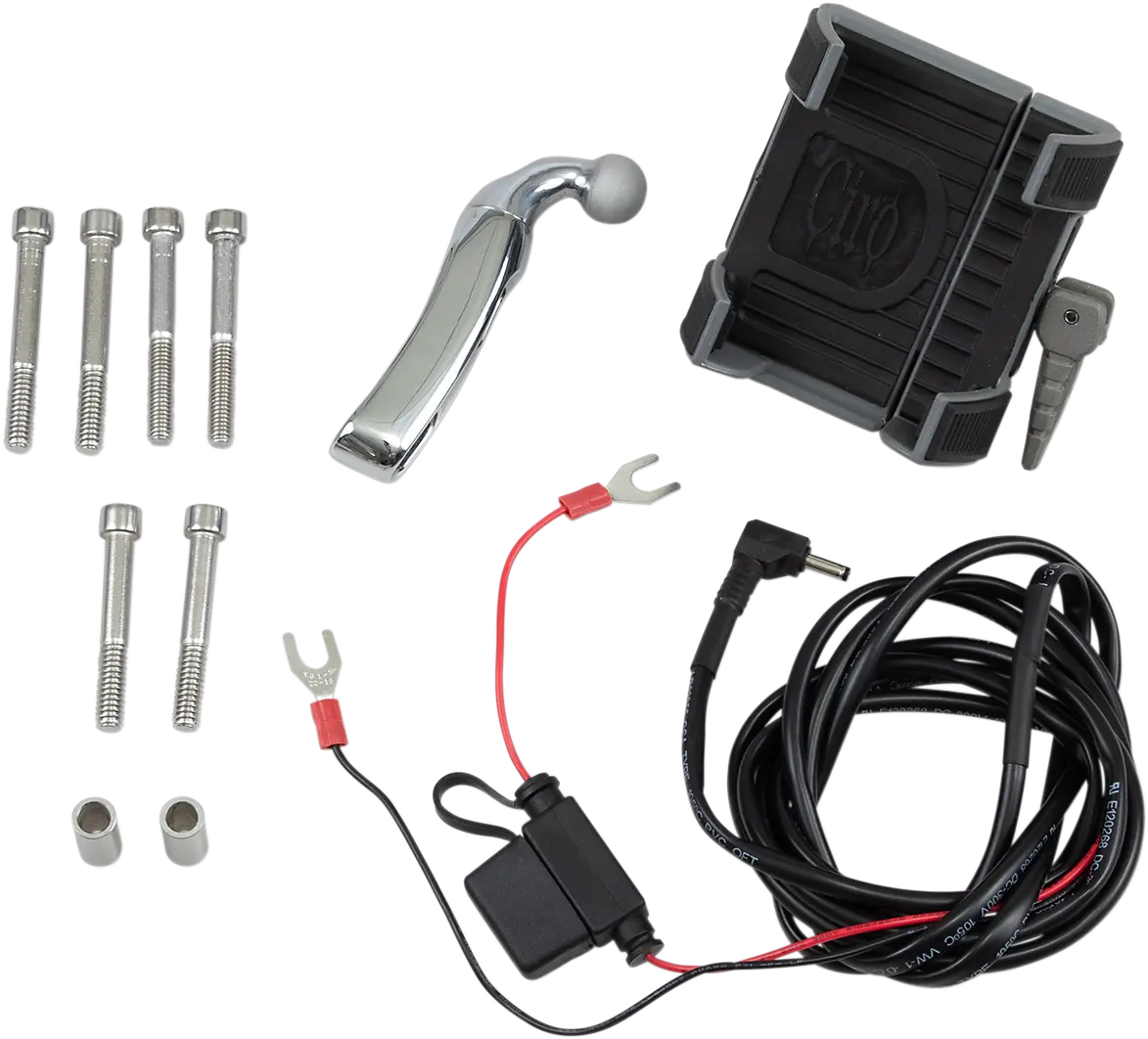 The Ciro Smartphone/GPS Holder offers a user-friendly design that allows for quick and easy mounting and removal of your device. Its ambidextrous lever system lets you effortlessly lock your smartphone into the secure, rubber-molded fingers, providing a firm hold. The integrated 1.3 USB port enables on-board charging, ensuring your device remains powered throughout your journey. Constructed from high-quality materials with a black and chrome finish, this mount combines durability with sleek aesthetics, seamlessly blending with your motorcycle's style. The perch mounting location offers convenient access to your device, allowing for optimal visibility and ease of use. This holder is perfect for motorcycle enthusiasts and professionals who rely on their smartphones or GPS devices for navigation, communication, and entertainment while riding. Stay connected and informed on the road with the Ciro Smartphone/GPS Holder.