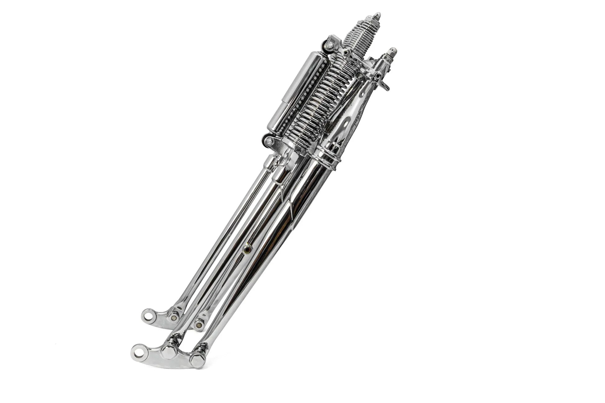 The Classic Bike Fork Assembly provides improved handling and durability for your vintage motorcycle. Built to exceed OEM standards, this Springer fork offers a reliable and stylish upgrade. It comes with an OEM-style upper triple tree, compatible with OEM-style handlebars or springer functional handlebars, ensuring a seamless integration. Note that while an upper triple tree is included, in some cases a different one may need to be ordered separately. The fork's chrome finish adds a touch of classic elegance, making it an excellent choice for restoration projects and custom builds alike. Enhance your motorcycle's front end with this high-quality fork assembly.