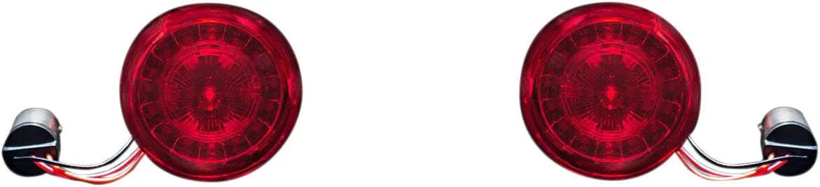 The Custom Dynamics ProBEAM® Red LED Turn Signals maximize performance through innovative reflector technology and high-quality, automotive-grade LEDs. The outer ring, equipped with 16 red ProBEAM® LEDs, creates a smooth red halo effect that serves as a stylish running light. Complementing this, the 12 center red LEDs deliver a full-contrast brake and turn signal, providing exceptional visibility to other drivers. These turn signals are designed for easy installation and are a direct replacement for your existing bulbs, ensuring a seamless upgrade to brighter, more reliable LED lighting. Improve your motorcycle's safety and aesthetics with the superior quality and performance of Custom Dynamics ProBEAM® LED turn signals. Perfect for Harley Davidson® models using 1157 bulb sockets.