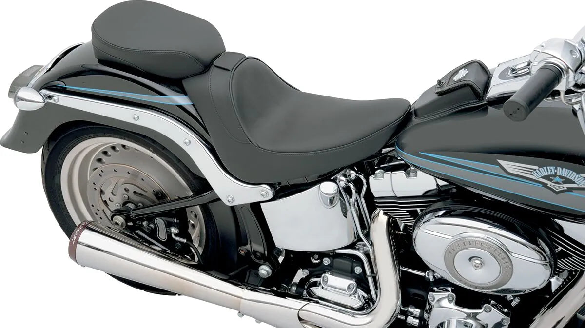 The Drag Specialties solo seat features solar-reflective leather in the seating area and automotive-grade vinyl on the sides. This patented process significantly reduces the surface temperature, keeping you cooler and more comfortable, especially during long rides. The seat's construction ensures higher durability and extended life compared to conventional leather or vinyl seats. Its 3/16" ABS thermoformed seat base, complete with a carpeted bottom, protects your motorcycle's paint while providing a solid foundation. The flexible urethane foam interior maximizes comfort, allowing you to enjoy every journey. This seat lowers the rider by 1/2" from the stock seat position, enhancing the riding experience. Proudly made in the USA, this seat combines quality craftsmanship with innovative design.