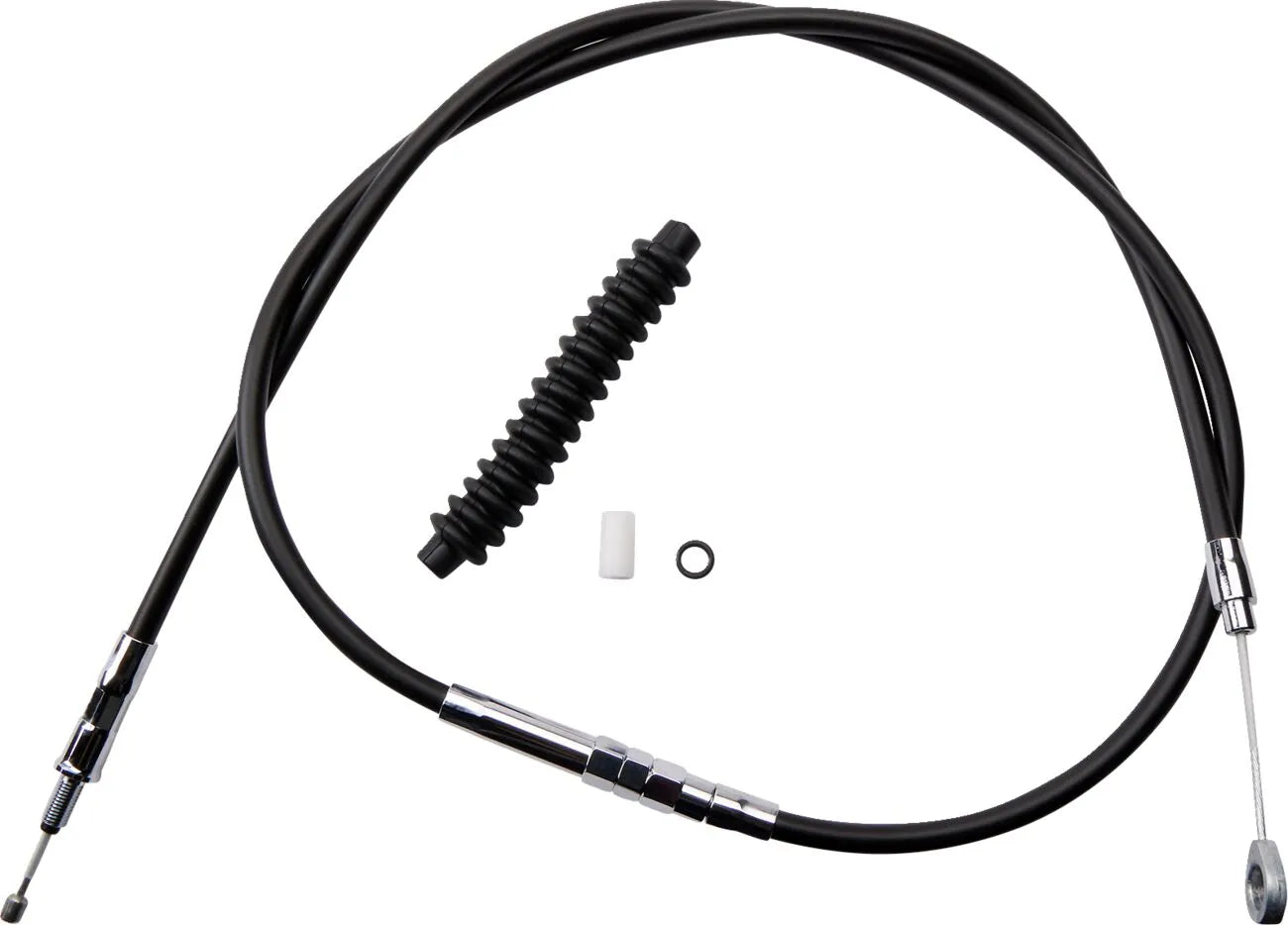 The Drag Specialties High-Efficiency Clutch Cable utilizes a black vinyl outer casing for weather resistance and a sleek look. The tempered-steel inner wire ensures strength and longevity, while the nylon inner sleeve minimizes friction for effortless clutch actuation. High-performance engineering employs a longitudinal winding technique, allowing the cable to bend naturally and preventing spring and compression issues. This innovative design results in a more responsive and consistent clutch feel, giving you greater control over your motorcycle. Installation is straightforward, providing a direct replacement for your stock cable. Late-style cables are measured with the adjuster completely collapsed.