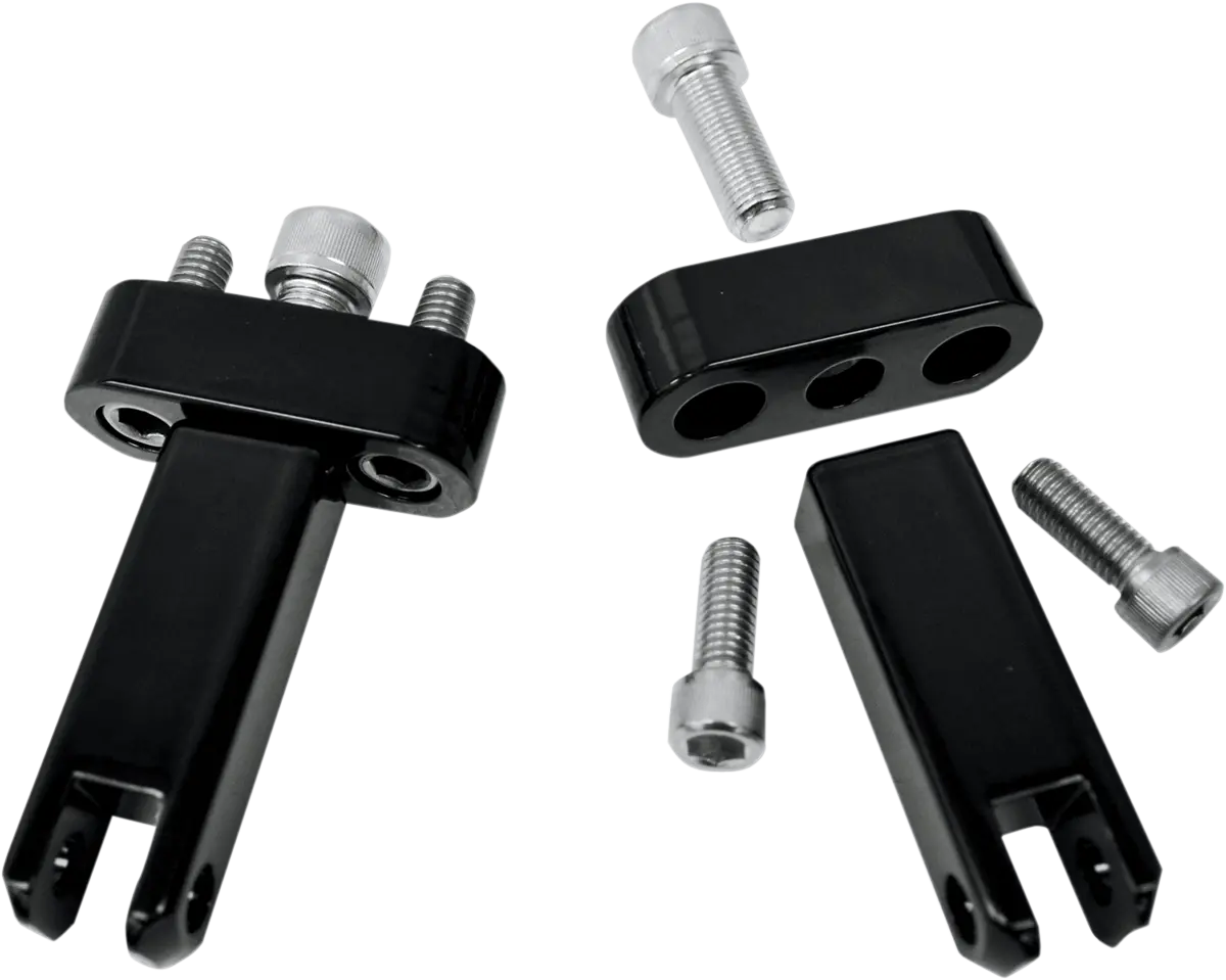 The Drag Specialties Passenger Foot Peg Mount Kit is designed to seamlessly replace the OEM floorboards with stylish and functional foot pegs. Crafted from durable billet steel, these mounts ensure long-lasting performance and a sleek appearance. The gloss black and silver finish adds a touch of elegance to your ride. These mounts accept any male-mount style foot pegs, allowing for a wide range of customization options. Installation is straightforward, providing a secure and stable platform for passenger foot pegs. Made in the USA, these mounts guarantee superior quality and reliability. They are adjustable to give the best possible riding experience.