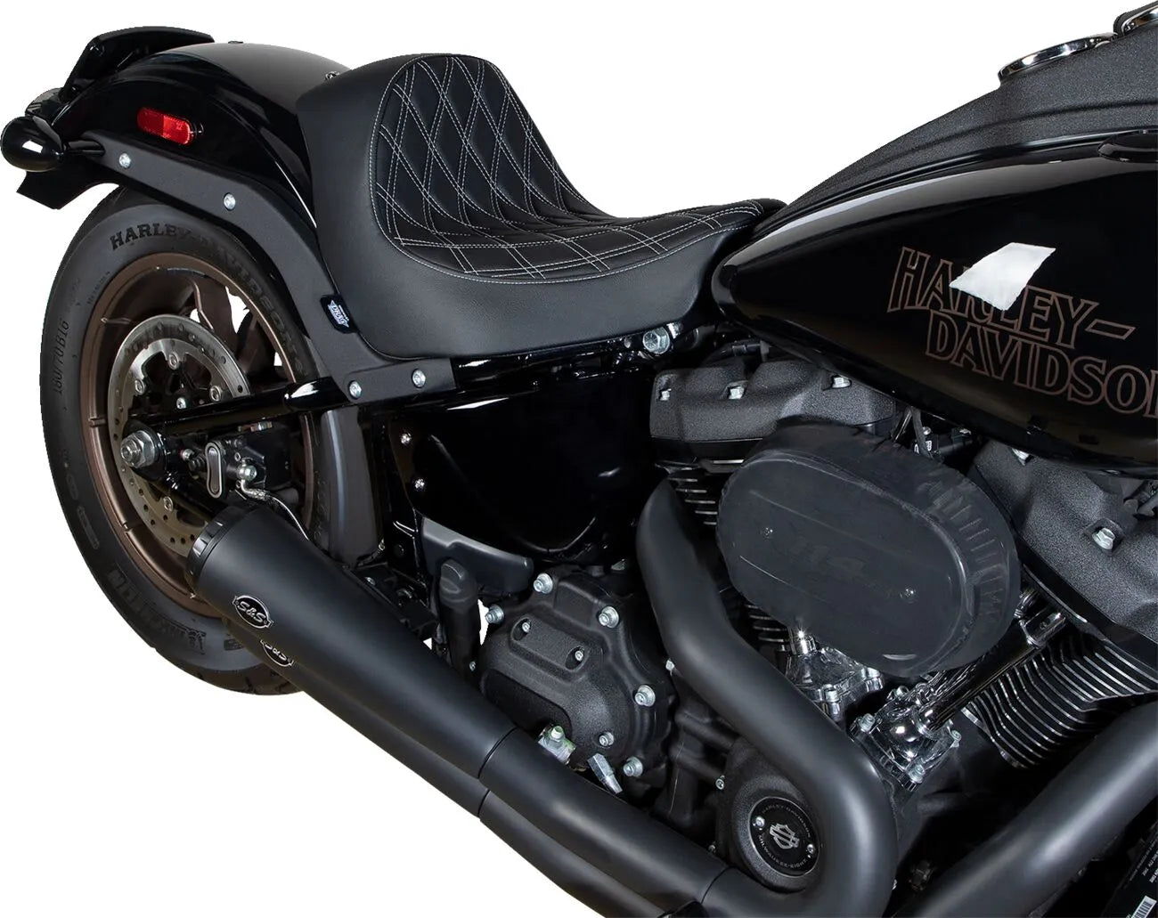 The Drag Specialties Solo Seat is engineered for maximum comfort and a custom look. It features a 6.5" tall driver support with unique styling and a seating area contoured for optimal comfort, while remaining narrow at the front to allow better leg clearance. Constructed from molded flexible urethane foam and wrapped in high-quality automotive-grade vinyl, this seat offers both durability and a premium feel. The 3/16" ABS thermoformed seat base ensures a perfect fit and features a fully carpeted bottom with rubber bumpers to protect your motorcycle's paint. Installation is straightforward using the stock fender mount holes, with all necessary hardware included. Proudly made in the USA, this seat combines quality craftsmanship with exceptional design.