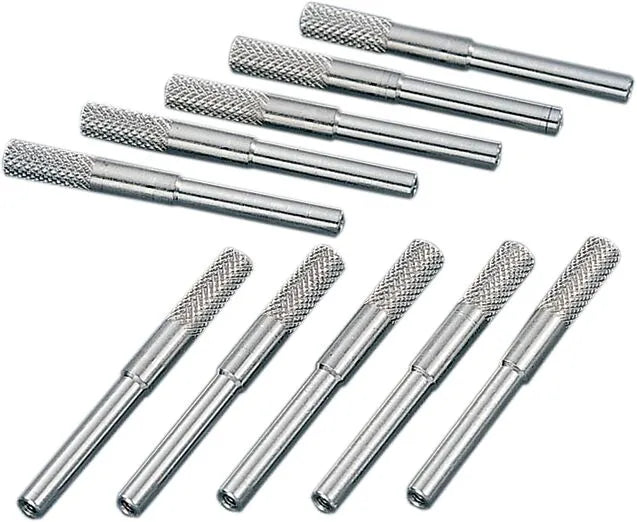 These chrome reset knobs from Drag Specialties are perfect for restoring or customizing your motorcycle's speedometer. Crafted from high-quality aluminum with a durable chrome finish, these knobs offer both style and longevity. Their precise design ensures a snug fit and reliable operation. Whether you're replacing a broken knob or simply upgrading your bike's appearance, these chrome reset knobs provide an excellent solution. Easy to install, they'll have your speedometer looking and functioning like new in no time. The set comes with 10 knobs, ensuring you have spares or can outfit multiple speedometers.