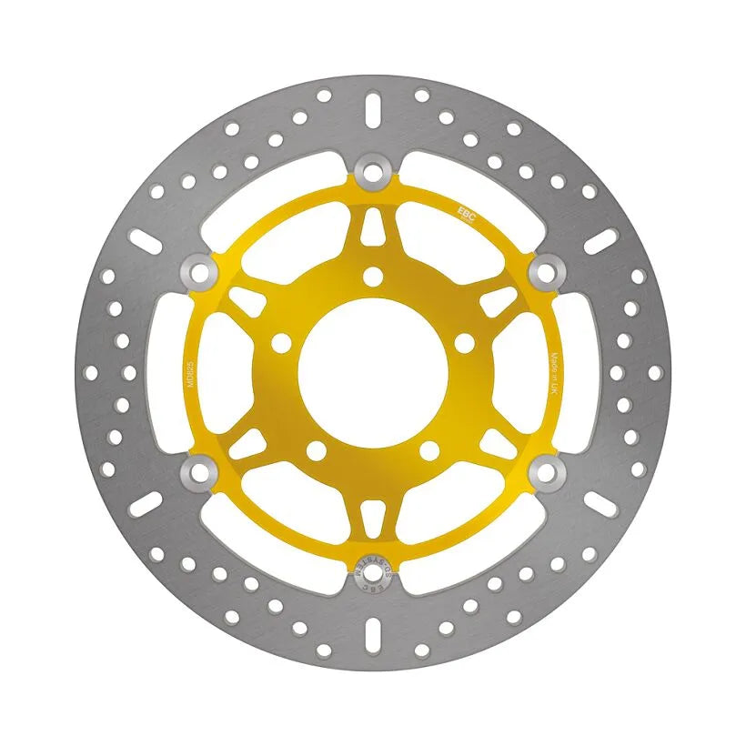 The EBC Pro-Lite series has set a new benchmark in aftermarket brake rotors, delivering exceptional performance and safety. Designed to closely resemble the original equipment disc, the Pro-Lite rotor provides an impressive 18% increase in braking power compared to stainless steel alternatives. Its robust, riveted construction ensures durability and long-lasting reliability. The drilled braking surface further enhances performance by dissipating heat and improving wet weather braking. Upgrade your motorcycle's braking system with the EBC Pro-Lite for a safer and more responsive ride. This two-piece floating design brake rotor combines an aluminum center with a stainless steel outer ring, offering optimal heat dissipation and weight reduction.