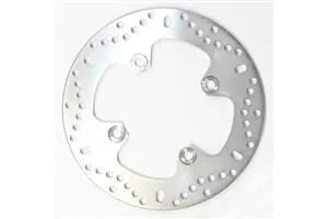 The EBC Round HPSR Solid Brake Rotor is British made using German mill rolled precision stainless steel. Laser-cut, heat-treated, and tempered, these rotors offer superior performance and longevity. Designed as exact replacements for your motorcycle's original brake discs, installation is simple and requires no modifications. Just install with new pads, and you're ready to go. The drilled braking surface enhances heat dissipation and wet weather performance, ensuring consistent and reliable braking in various conditions. Upgrade to EBC for enhanced safety and peace of mind.