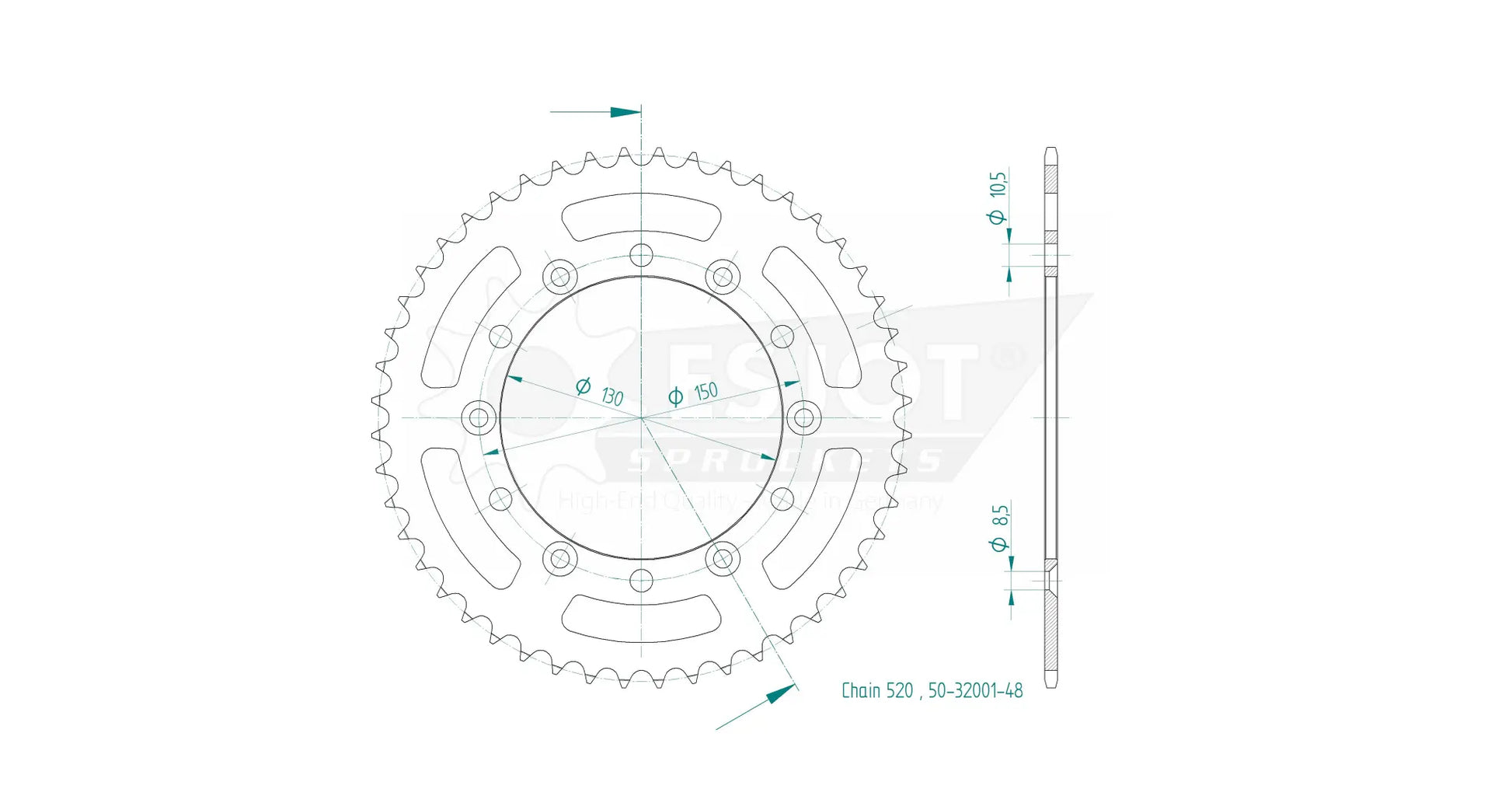 Esjot sprockets are meticulously crafted for superior performance. The rear sprocket is made from high-strength QSTE460 steel and features precise toothing achieved through the Diamond Cut 2.0 process, guaranteeing exceptional durability and minimal wear. Its specialized surface treatment adds an extra layer of protection, extending the sprocket's lifespan. With concentricity and axial run-out tolerances of less than 0.1 mm, you can expect smooth, reliable operation. This 520 sprocket is designed for easy installation and perfect compatibility, ensuring optimal performance and power delivery. Upgrade your ride with this high-quality, German-made sprocket and experience the ultimate in reliability and performance.