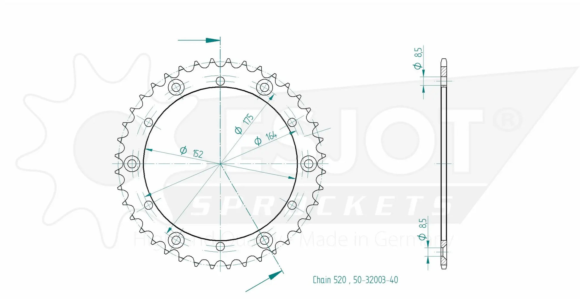 Esjot sprockets are manufactured using a special high-strength QSTE460 steel, providing enhanced durability and resistance to wear. The advanced Diamond Cut 2.0 process ensures precise toothing, minimizing friction and maximizing power transfer. A specialized surface treatment further enhances the sprocket's resistance to corrosion and wear, extending its service life. With concentricity and axial run-out tolerances of less than 0.1 mm, this sprocket guarantees smooth and reliable operation. Whether you're tackling demanding off-road trails or cruising on the open road, the Esjot Standard Rear Sprocket delivers consistent performance and unwavering reliability. 100% Made in Germany, ensuring top-notch quality and precision engineering. Upgrade to Esjot for a sprocket that stands up to the toughest challenges.