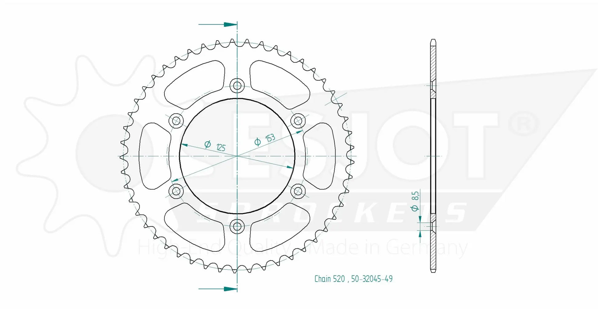 Upgrade your motorcycle's performance and durability with the Esjot 520 Steel Rear Sprocket. Engineered to meet and exceed OEM standards, this sprocket delivers exceptional quality and longevity, ensuring optimal power transfer and reliability under the most demanding conditions. Made in Germany, the Esjot 520 sprocket is the ideal choice for enthusiasts and professionals seeking top-tier performance.