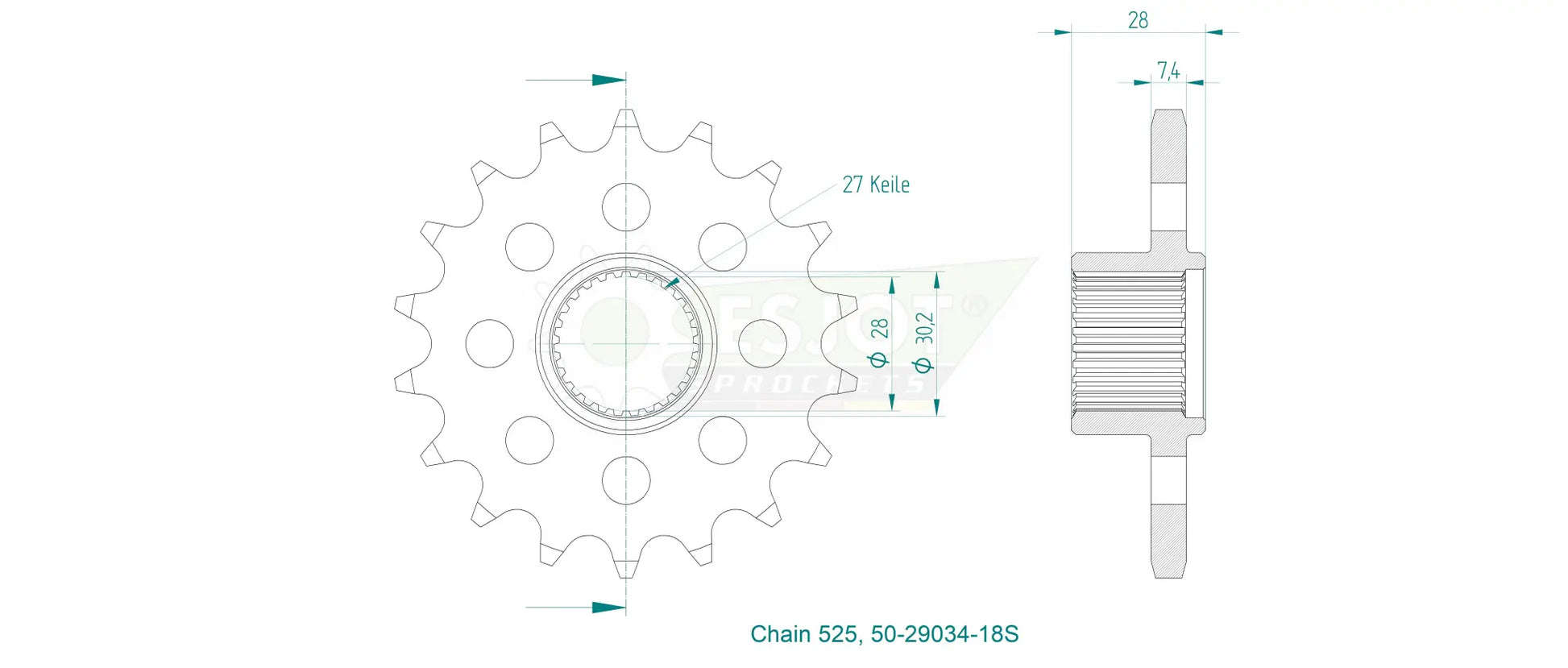 Crafted from specialized steel and subjected to high-quality case hardening, the Esjot front sprocket ensures exceptional strength and durability, making it ideal for the rigorous conditions encountered in all riding environments. The precise gearing guarantees optimal power transfer and smooth operation. Weight optimization, achieved through lightening holes and additional twist-in design, provides a competitive edge without compromising running performance. Manufactured on CNC automatic lathes and state-of-the-art broaching machines, this countershaft sprocket guarantees a precise fit on the drive shaft. With concentricity and axial run-out tolerances of less than 0.1 mm, the Esjot 525 front sprocket ensures minimal vibration and maximum efficiency. This sprocket is specially optimized for racing applications, providing a performance boost where it matters most. Proudly 100% Made in Germany, ensuring top-tier quality and precision.