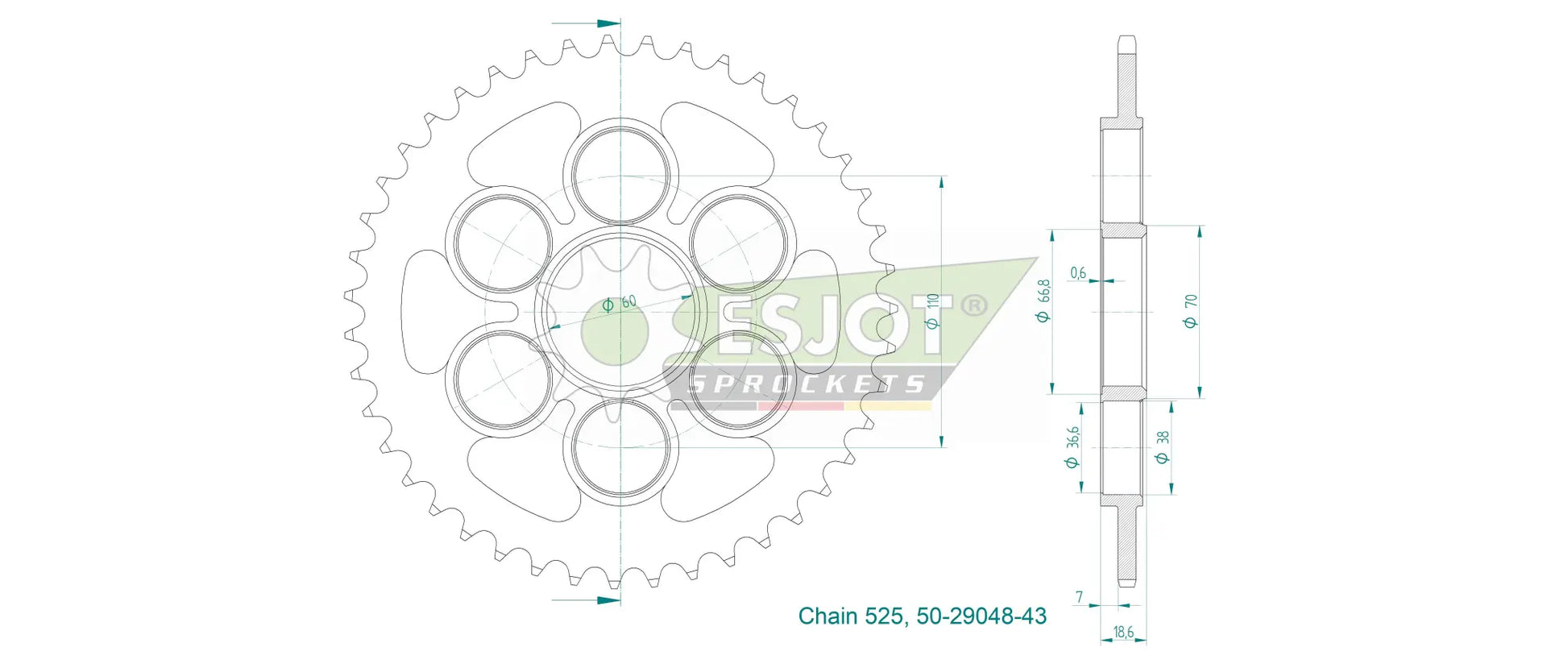 The Esjot 525 Standard Rear Sprocket is engineered for superior performance and longevity. Constructed from high-quality, high-strength C45 steel and finished with a special zinc-plated surface treatment, this sprocket is built to withstand the rigors of daily riding and harsh environmental conditions. The precise toothing, achieved through the advanced Diamond Cut 2.0 process, ensures optimal chain engagement and efficient power transmission. With concentricity and axial run-out tolerances of less than 0.1 mm, this sprocket guarantees smooth and reliable operation. Upgrade to the Esjot 525 sprocket for enhanced performance and peace of mind, knowing you're riding with a 100% German-made product.