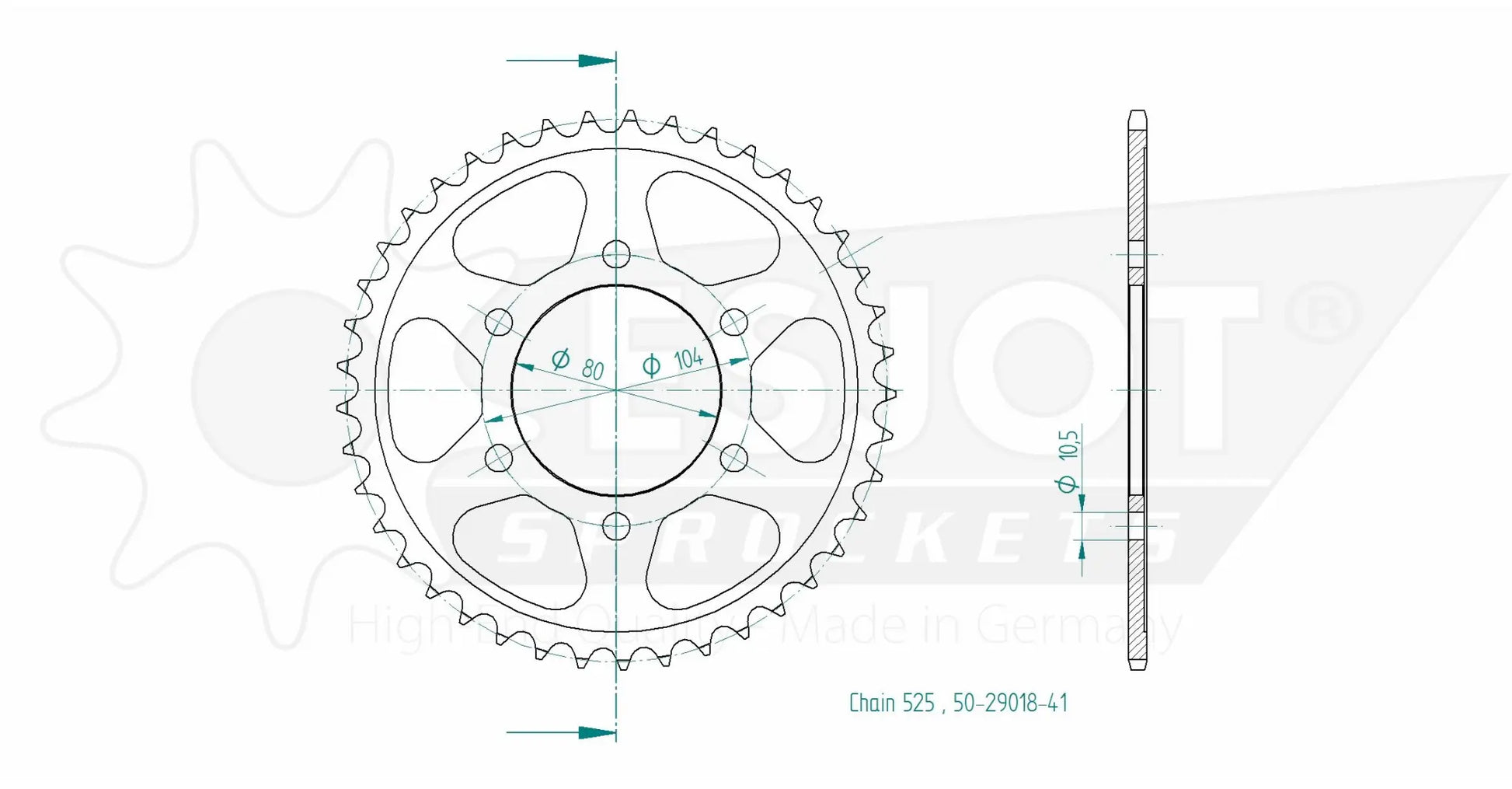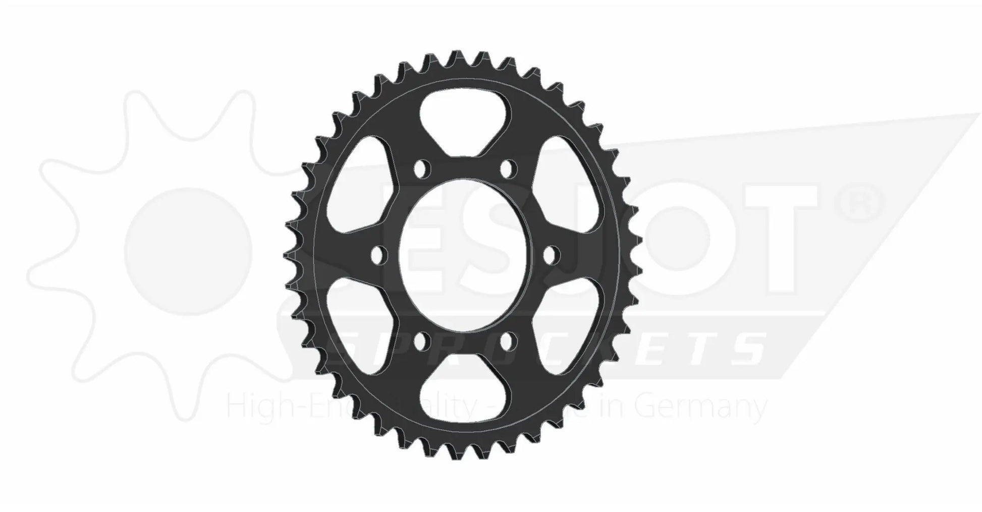 Esjot sprockets are crafted from high-strength QSTE460 steel, renowned for its exceptional resilience and wear resistance. The advanced Diamond Cut 2.0 process guarantees precise toothing, minimizing friction and maximizing power transfer. A specialized surface treatment further enhances the sprocket's resistance to corrosion and wear, ensuring a long service life. With concentricity and axial run-out tolerances of less than 0.1 mm, this sprocket provides smooth and reliable operation. This 41-tooth rear sprocket delivers consistent performance for your motorcycle.